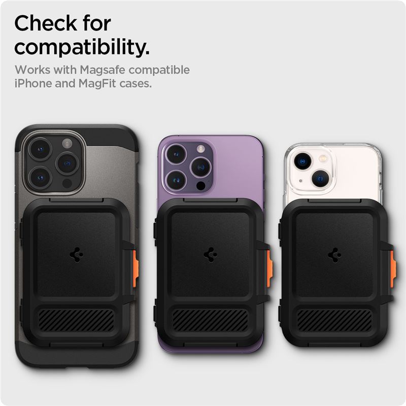 Zabezpečuje obsah pevným zámkem a protiskluzovým pavučinovým vzorem zaručuje jistý úchop v každé situaci. Plná kompatibilita s technologií MagSafe umožňuje snadné přichycení na telefon nebo ochranný kryt, zatímco integrované textilní poutko pojme i hotovost.