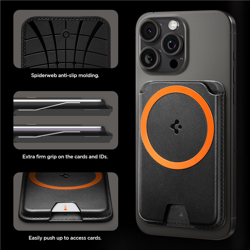 Vytváří místo pro uložení až tří karet v extrémně tenkém profilu, který nepřekáží při vkládání mobilu do úzké kapsy. Integrovaný přístupový port na zadní straně umožňuje rychlé vysunutí obsahu a zjednodušuje každodenní placení nebo kontroly totožnosti.