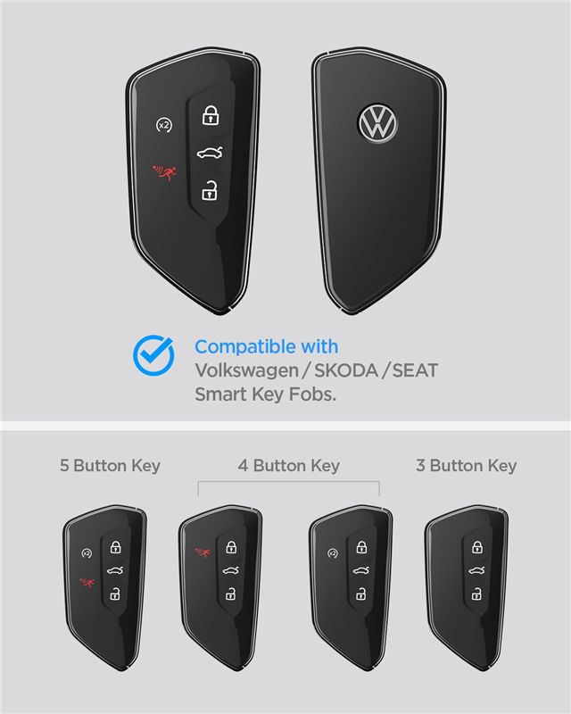 Ochranný kryt z pružného TPU materiálu spolehlivě chrání chytrý klíč vozů Volkswagen, Škoda a Seat před mechanickým poškozením. Poloprůhledný černý povrch jemně tónuje původní vzhled, aniž by omezoval dosah signálu nebo zakrýval logo výrobce.
