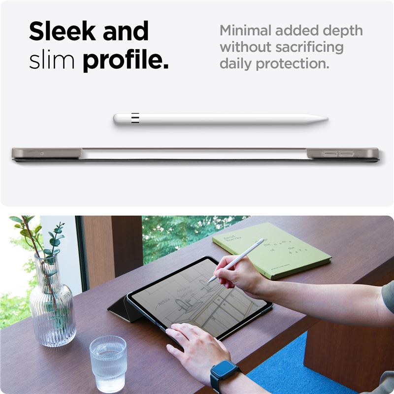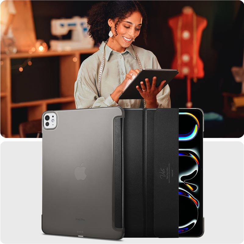 Lehké pouzdro Spigen Smart Fold přesně kopíruje křivky iPadu Pro 11" (2024) a zajišťuje mu komplexní ochranu ze všech stran. Konstrukce využívá kvalitní PU kůži, která je příjemná na dotek a odolává každodennímu opotřebení, aniž by zbytečně zvětšovala objem zařízení.