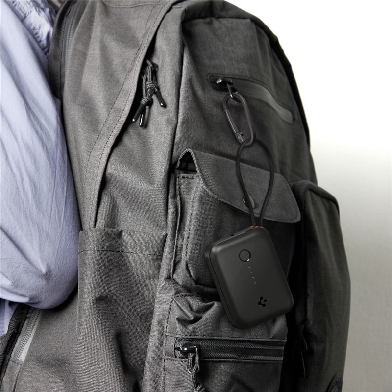 Powerbanka se zabudovaným kabelem Spigen Essential 10,000 mAh 30W Power Bank - černá
