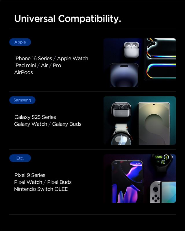 Umožňuje napájet až tři zařízení současně pomocí dvou portů USB-C s podporou PPS a jednoho portu USB-A. Součástí balení je metrový USB-C kabel a ochranné pouzdro pro bezpečné přenášení v zavazadle.