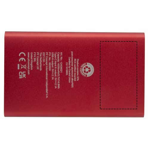Powerbanka typu C Pep z recyklovaného hliníku, 4000 mAh - red