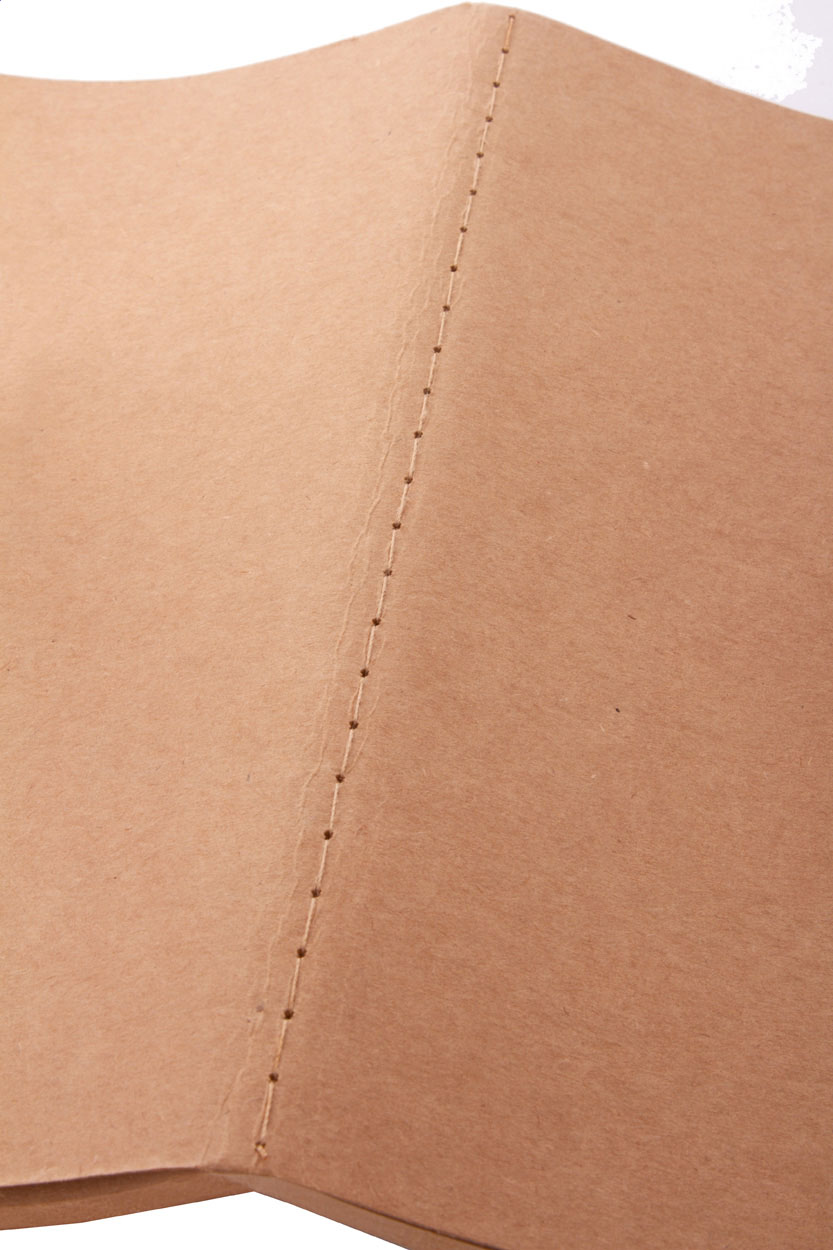 Blok A6 s deskami z recyklovaného papíru, šitý a 60 prázdnými listy z recyklovaného kraftového papíru.