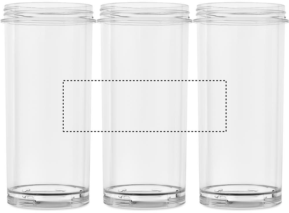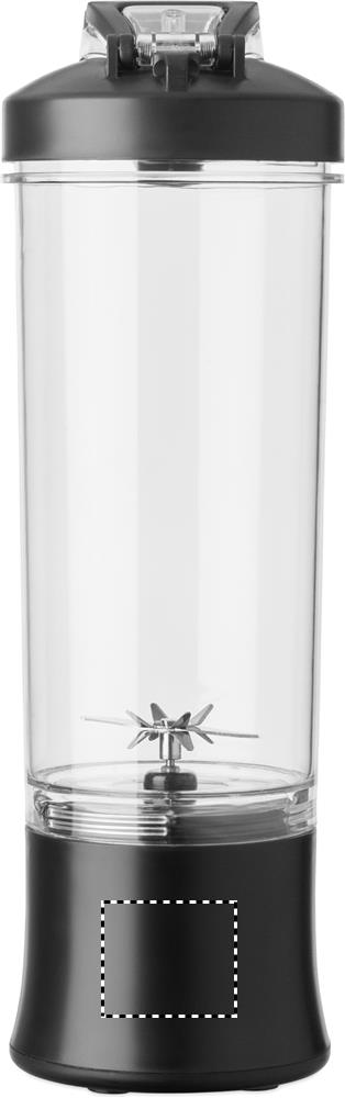 Přenosný mixér z PCTG s víčkem z PP, přídavným víčkem a poutkem na přenášení. Mixér s 18.000 otáčkami za minutu, dobíjecí 1200 mAh baterií a kabelem Type-C/USB-A. Objem: 600 ml.