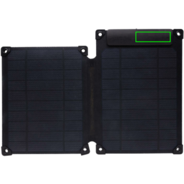 Přenosný 10W solární panel umožňující přímé nabíjení zařízení jako jsou telefony, reproduktory, powerbanky a jiné. Panel stačí umístit na sluneční světlo a nabíjené zařízení připojit. Stupeň nabíjení vždy závisí na slunečních podmínkách. Panel využívá vysoce kvalitní monokrystalické solární panely s konverzním poměrem 21 %. Včetně USB A a USB C výstupů (max. 5 V/1 A) a světelných indikátorů znázorňujících rychlost nabíjení. Rychlost solárního nabíjení: 5 V/2 000 mA. Integrovaný stojánek pro nast