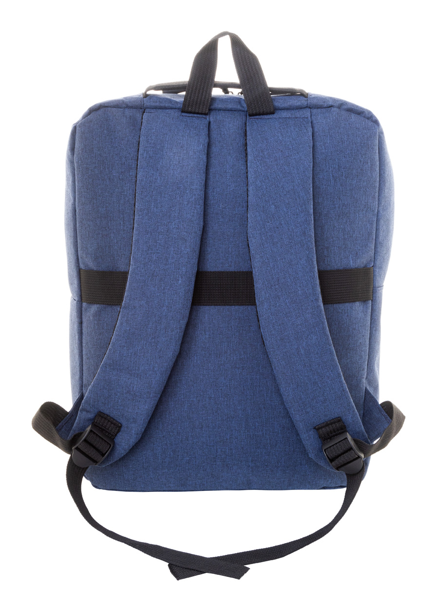 Batoh RPET s hlavním oddílem na zip, 2 kapsami na zip, boční kapsou a polstrovanou přihrádkou na notebook (15"). S popruhem na vozík, polstrovanými zády a ramenními popruhy. Polyester 600D RPET, s výrazným štítkem RPET.
