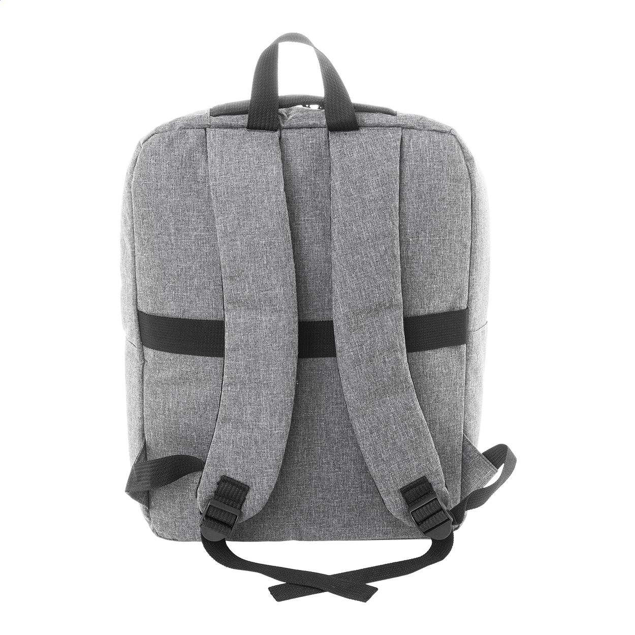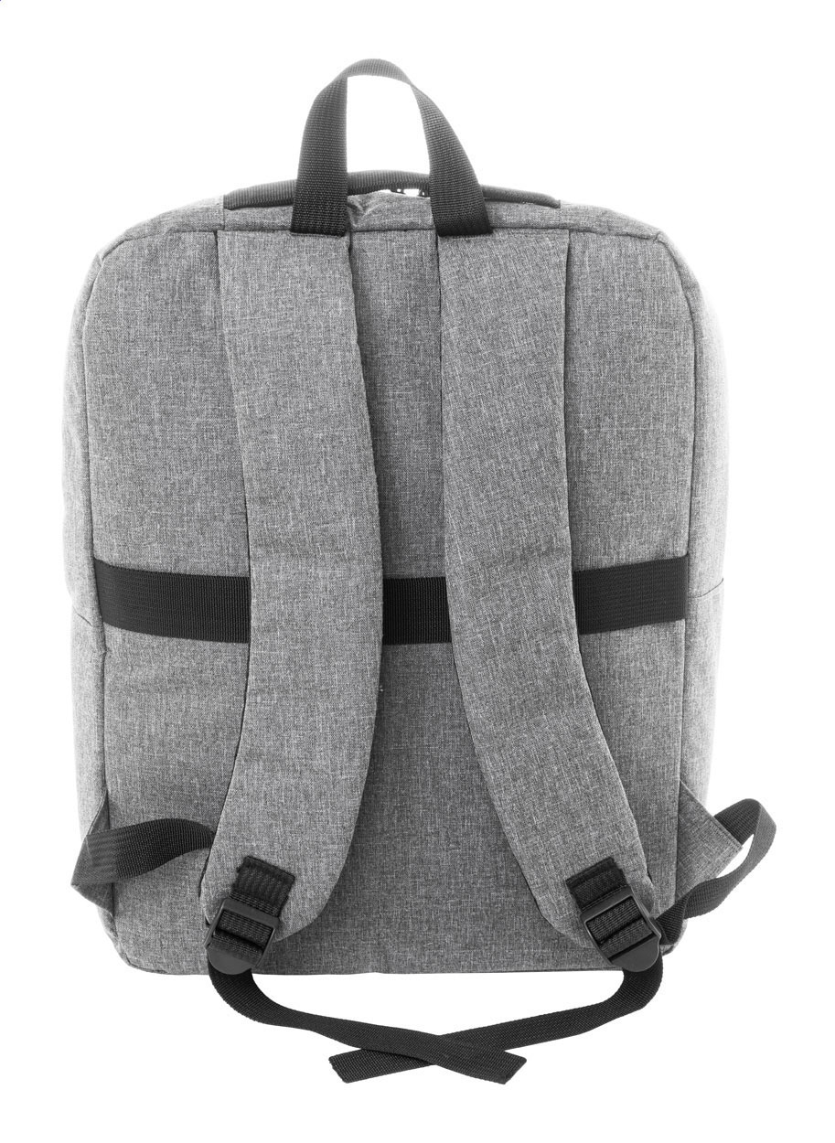 Batoh RPET s hlavním oddílem na zip, 2 kapsami na zip, boční kapsou a polstrovanou přihrádkou na notebook (15"). S popruhem na vozík, polstrovanými zády a ramenními popruhy. Polyester 600D RPET, s výrazným štítkem RPET.