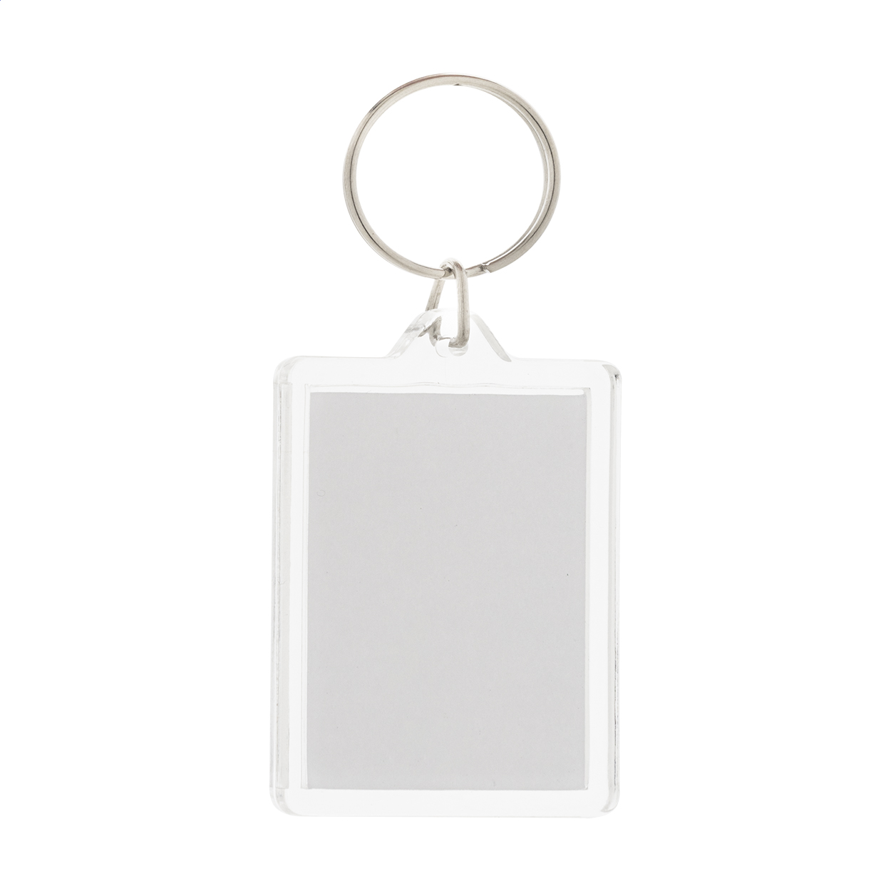 Přívěšek na klíče ve tvaru obdélníku z akrylu s barevnou papírovou vložkou na zakázku a kovovým kroužkem. Cena zahrnuje digitální tisk na obou stranách, nezahrnuje tiskovou přípravu. Min. mn.: 100 ks.