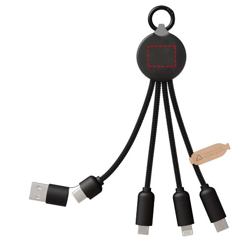 Nabíjecí kabel 5 v 1 se 3 konektory (typ C, Android, iPhone) a rPET kabely (vyrobené z recyklovaných plastových láhví). Díky duálnímu vstupu USB typu A a C je kabel 100% kompatibilní s nejnovějšími počítači na trhu (USB typu C). Pokované koncovky. Kabel dokáže nabíjet až 3 zařízení současně. Dodáváno v recyklovatelném obalu s kartou z recyklovaného papíru.