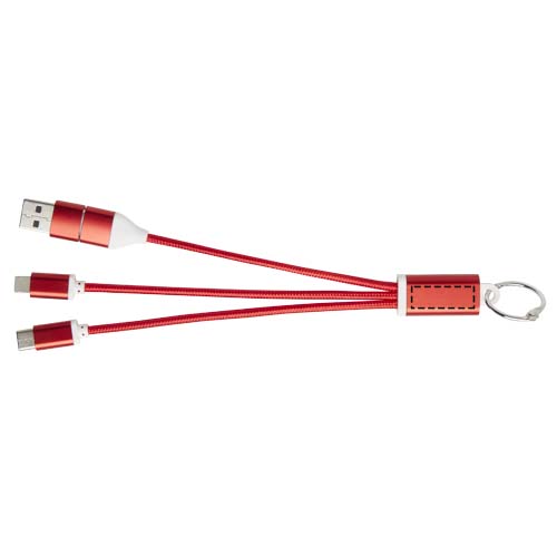 Nabíjecí kabel 4v1 s klíčenkou Metal z recyklovaného hliníku - red
