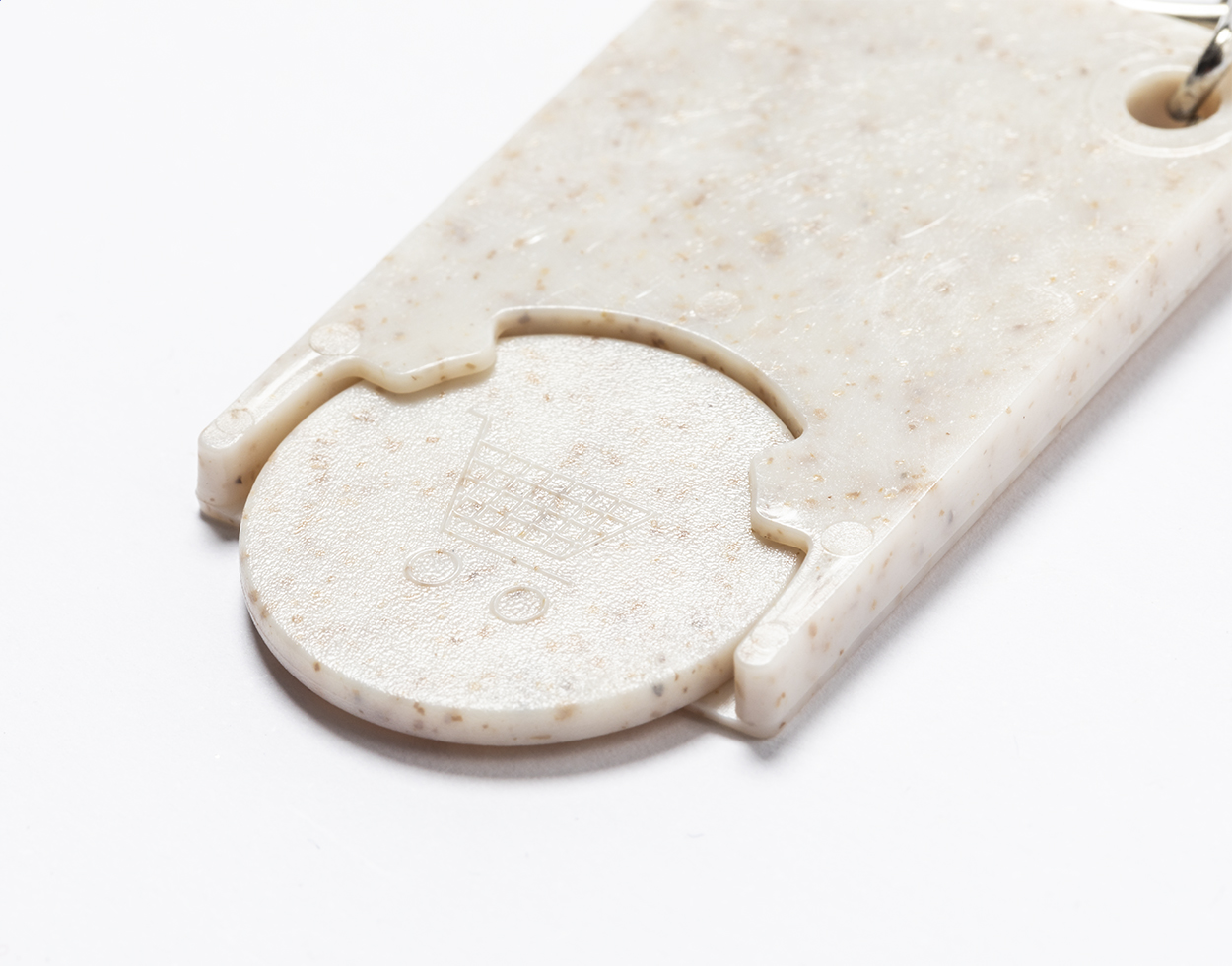 Plastový přívěšek na klíče se žetonem do nákupního vozíku z ekologické pšeničné slámy a ABS s kroužkem na klíče.