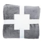 RPET flanelová fleecová deka, 260 gr/m². Zabalené do stuhy a potisknutelné papírové karty.