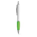 ABS kuličkové pero s klipem a kovovými detaily. Bílé tělo s barevným protiskluzovým gripem. K dispozici v široké škále barev. Černý inkoust