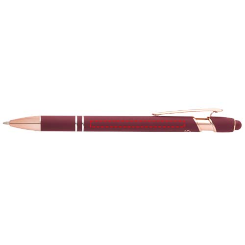 Kuličkové pero Nanna s povrchovou úpravou z růžového zlata má tělo vyrobené z recyklovaného hliníku a dotykový stylus vyrobený ze silikonu. Snižuje také množství odpadu na skládkách a pomáhá šetřit přírodní zdroje s cílem snížit emise skleníkových plynů. Barva inkoustu: Modrá. Délka psaní: 800 metrů. Rozměr hrotu: 1,0 mm.