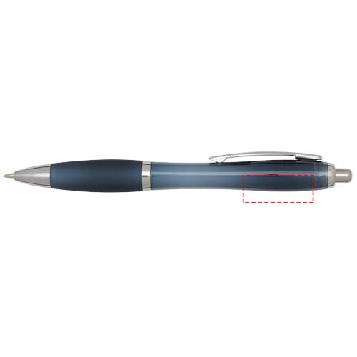 Kuličkové pero Nash z recyklovaného plastu s klikacím mechanismem se vyznačuje stylovým zaobleným designem, průhledným barevným tělem se stříbrnými detaily a stejnobarevným měkkým úchopem pro pohodlné psaní. Pero je vyrobeno z recyklovaného ABS plastu s certifikací RCS, díky čemuž pomáhá snižovat spotřebu primárních surovin při zachování vysoké odolnosti. Na zadní straně je logo rABS, které zdůrazňuje použití recyklovaného materiálu. Barva inkoustu: Černá. Rozměr hrotu: 1,0 mm. Délka psaní: 1000 metrů.