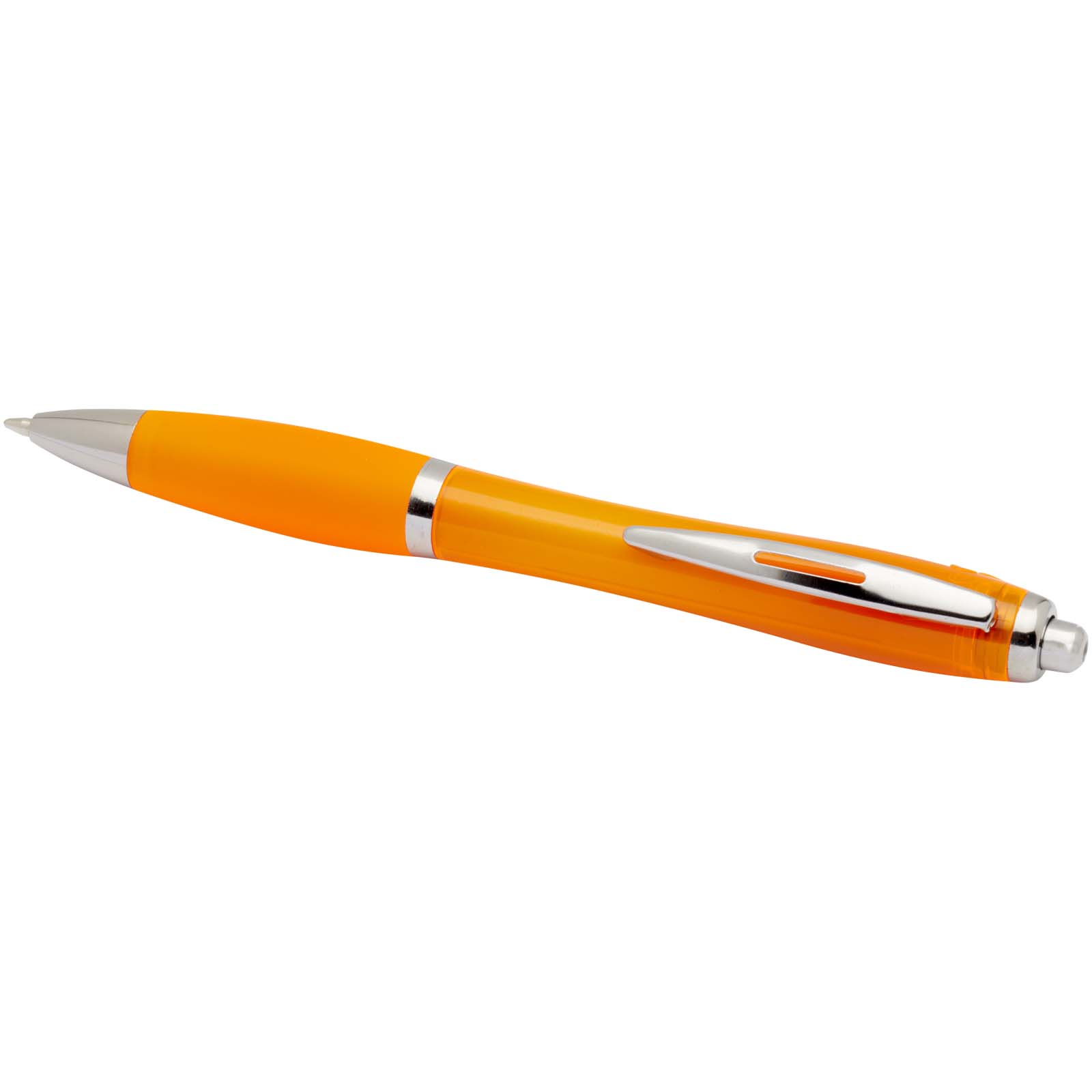 Kuličkové pero Nash z recyklovaného plastu s klikacím mechanismem se vyznačuje stylovým zaobleným designem, průhledným barevným tělem se stříbrnými detaily a stejnobarevným měkkým úchopem pro pohodlné psaní. Pero je vyrobeno z recyklovaného ABS plastu s certifikací RCS, díky čemuž pomáhá snižovat spotřebu primárních surovin při zachování vysoké odolnosti. Na zadní straně je logo rABS, které zdůrazňuje použití recyklovaného materiálu. Barva inkoustu: Černá. Rozměr hrotu: 1,0 mm. Délka psaní: 1000 metrů.