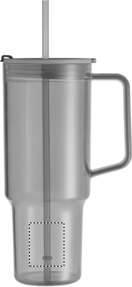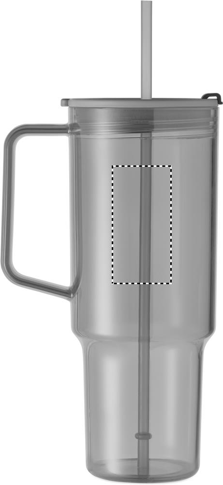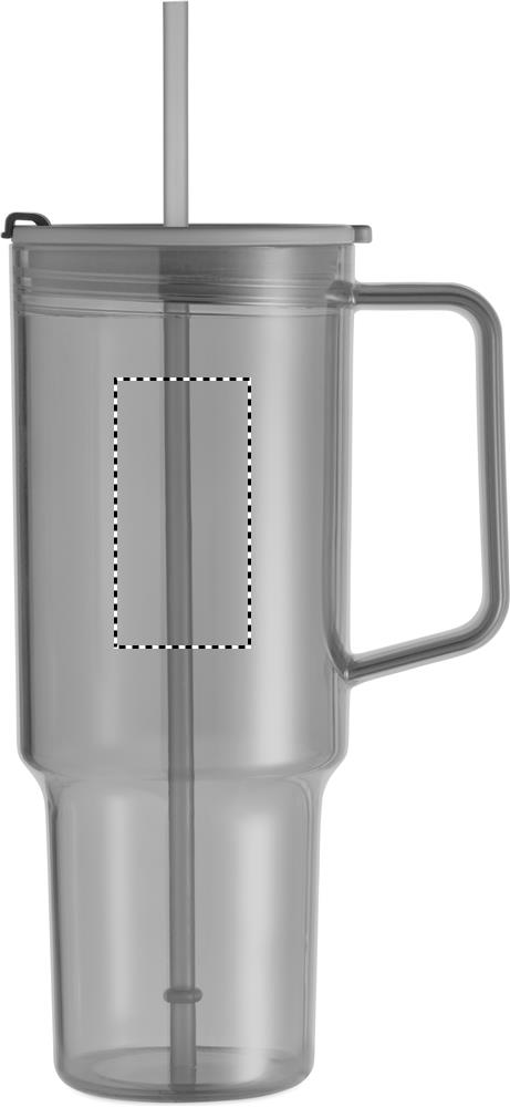 Průhledný hrnek z RPET s víčkem a PP brčkem. Objem: 1200 ml.