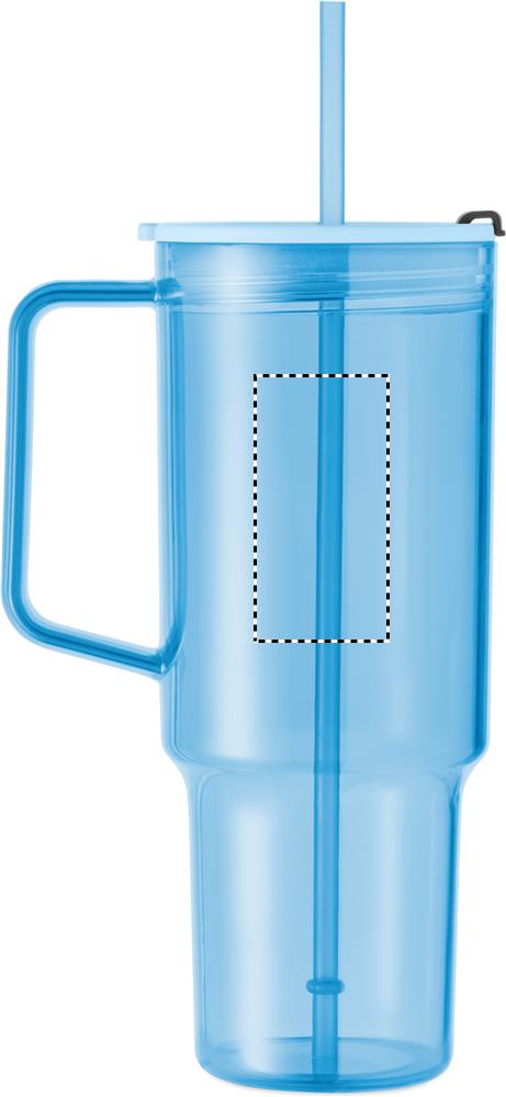Průhledný hrnek z RPET s víčkem a PP brčkem. Objem: 1200 ml.