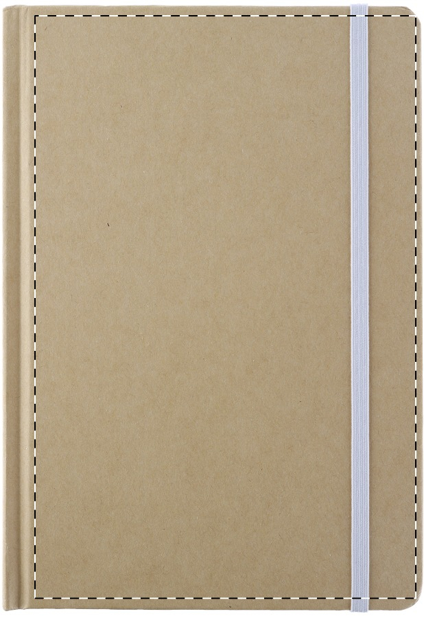 Poznámkový blok s deskami z lepenky se 100 prázdnými listy, barevnou záložkou a gumičkou.