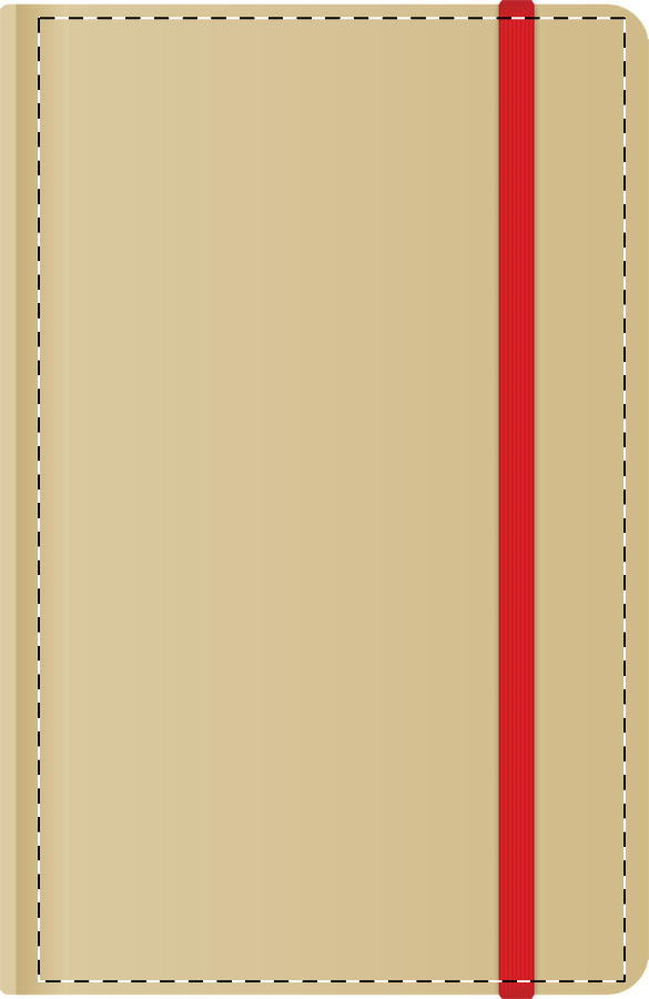 Poznámkový blok s deskami z lepenky. Obsahuje 100 prázdných listů, barevnou záložku a gumičku na zavírání.