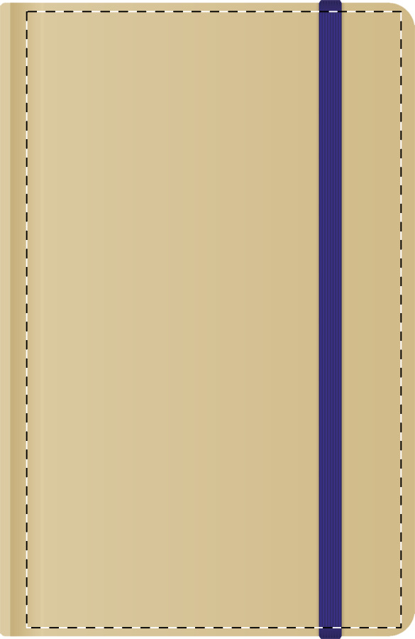 Poznámkový blok s deskami z lepenky. Obsahuje 100 prázdných listů, barevnou záložku a gumičku na zavírání.