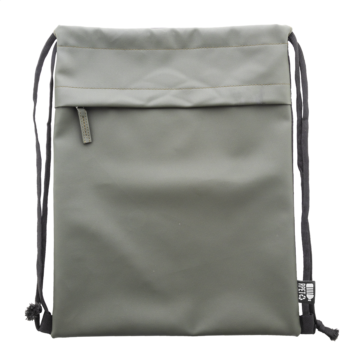 RPET vak se stahovací šňůrkou,s přední stranou potaženou PU a přední kapsou na zip. Polyester 600D RPET potažený PU s výrazným štítkem RPET.