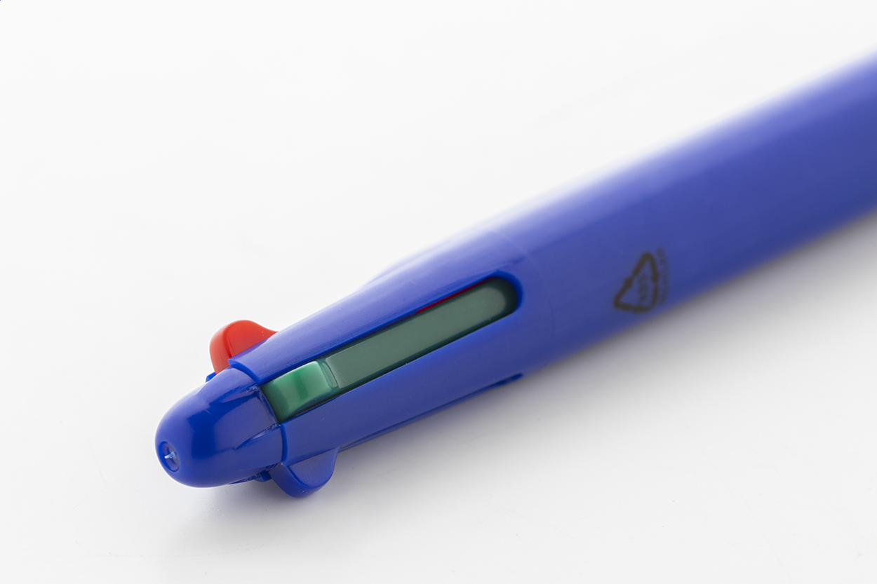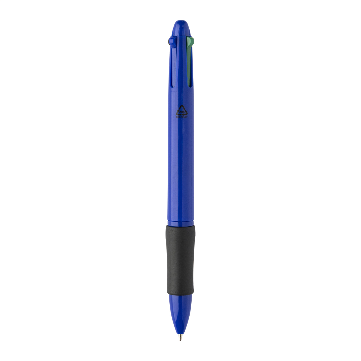Vícebarevné kuličkové pero z recyklovaného ABS materiálu s gumovým úchopem. S černou, modrou, červenou a zelenou náplní.