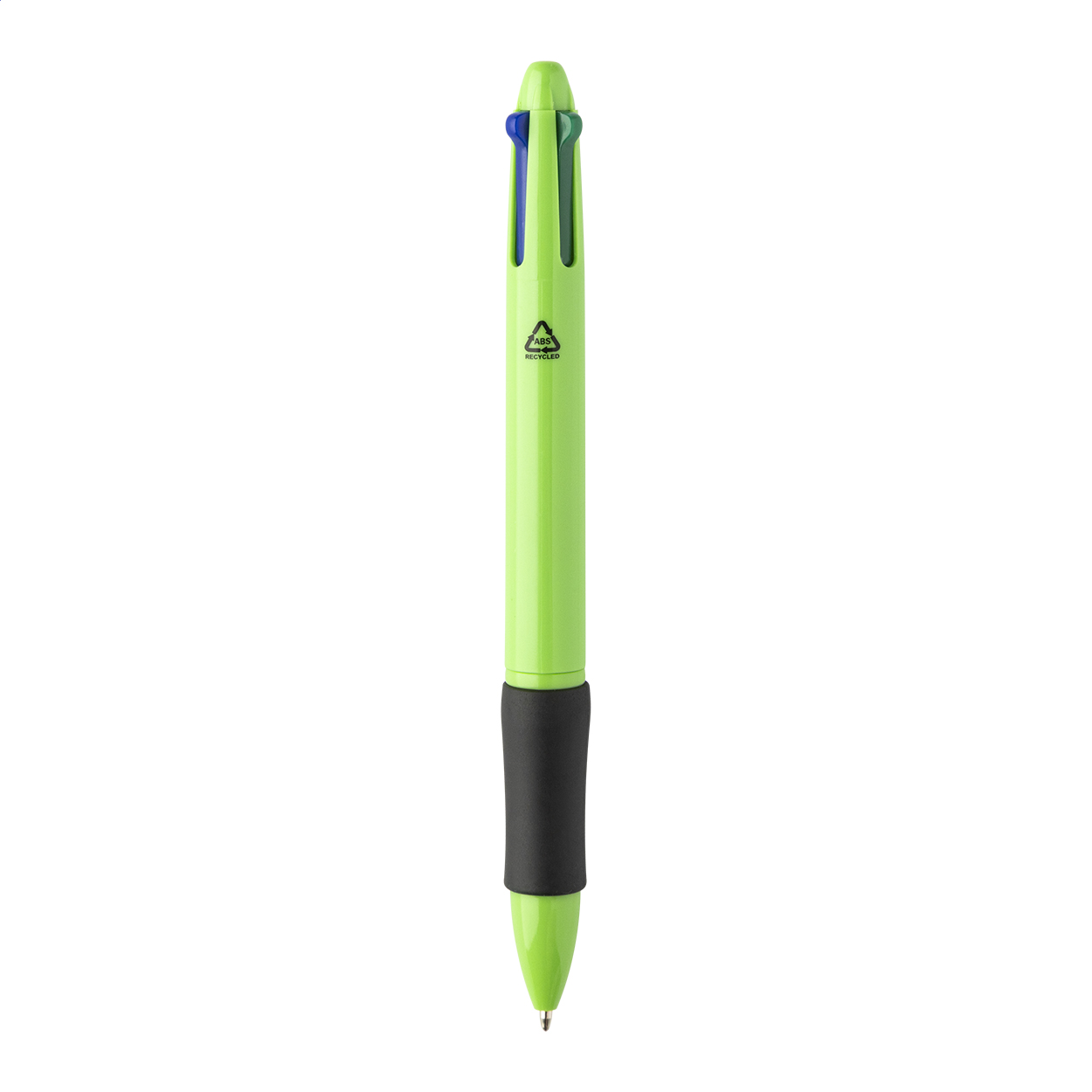 Vícebarevné kuličkové pero z recyklovaného ABS materiálu s gumovým úchopem. S černou, modrou, červenou a zelenou náplní.