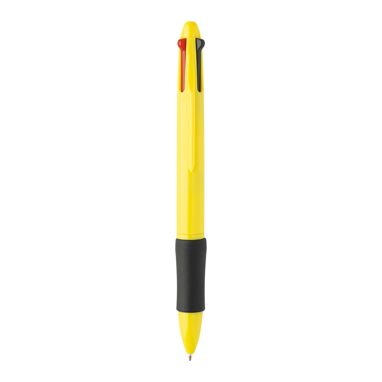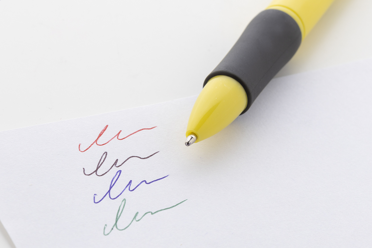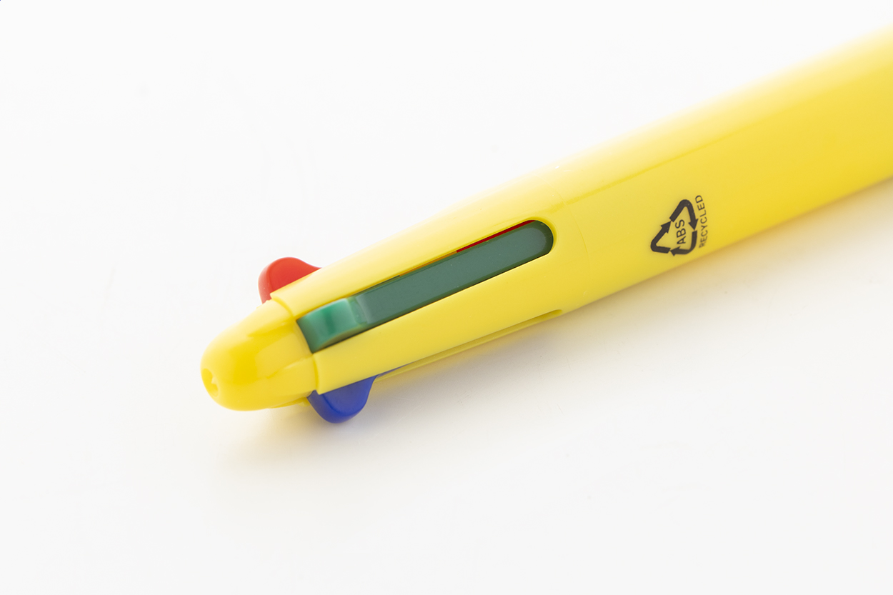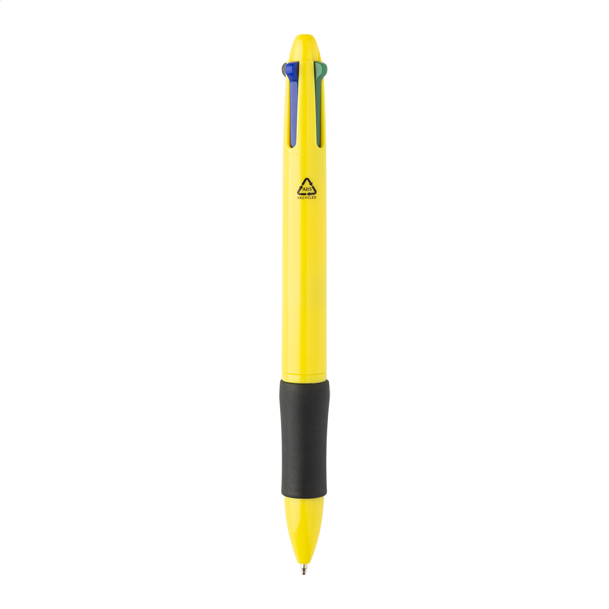 Vícebarevné kuličkové pero z recyklovaného ABS materiálu s gumovým úchopem. S černou, modrou, červenou a zelenou náplní.