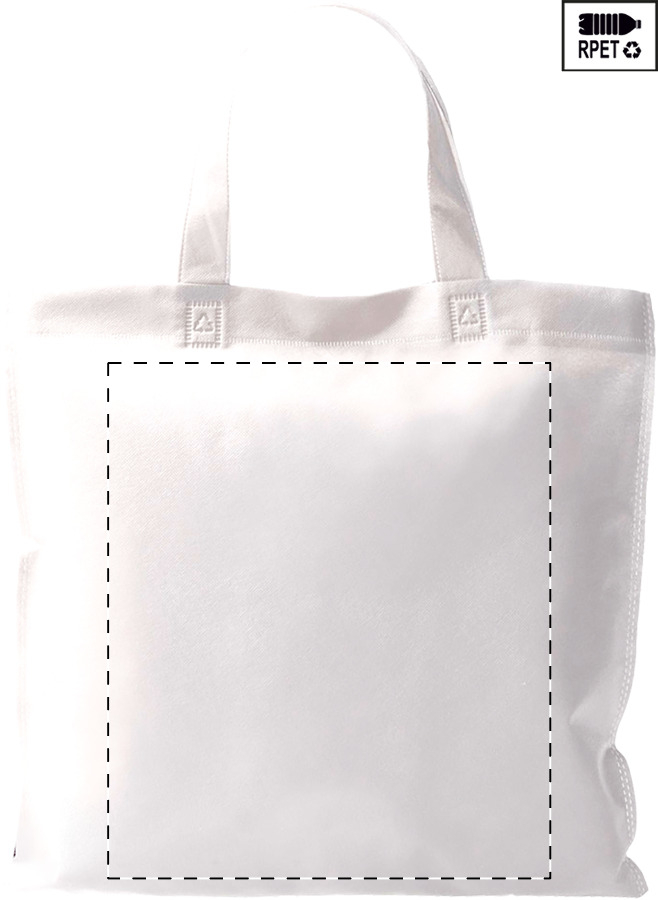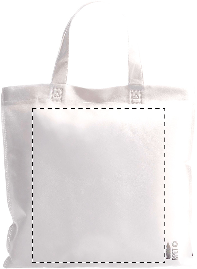 Nákupní taška z netkané textilie RPET se středně dlouhými uchy, 70 g/m2. S výrazným štítkem RPET.