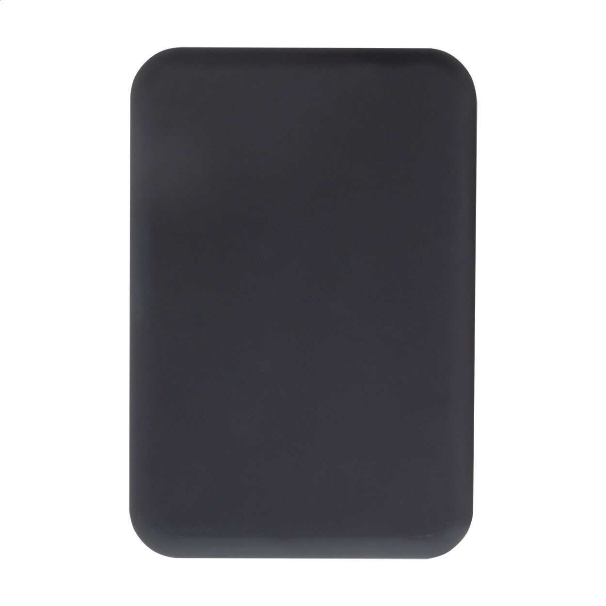 Power banka z recyklovaného ABS s 5000 mAh baterií a vestavěnou magnetickou bezdrátovou nabíječkou (5W). Se vstupem USB-C a portem pro nabíječku. Včetně samolepícího kovového kroužku pro použití magnetické funkce na jakémkoli bezdrátově nabíjecím zařízení. Kompatibilní s iPhone® 12 nebo novějším. Včetně USB nabíjecího kabelu.