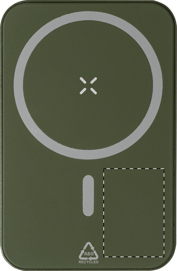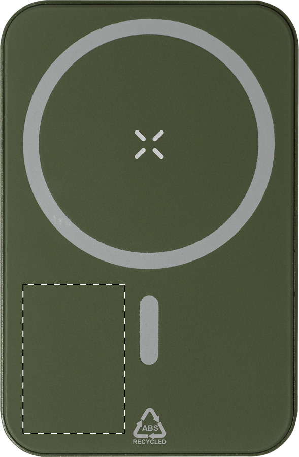 Power banka z recyklovaného ABS s 5000 mAh baterií a vestavěnou magnetickou bezdrátovou nabíječkou (5W). Se vstupem USB-C a portem pro nabíječku. Včetně samolepícího kovového kroužku pro použití magnetické funkce na jakémkoli bezdrátově nabíjecím zařízení. Kompatibilní s iPhone® 12 nebo novějším. Včetně USB nabíjecího kabelu.