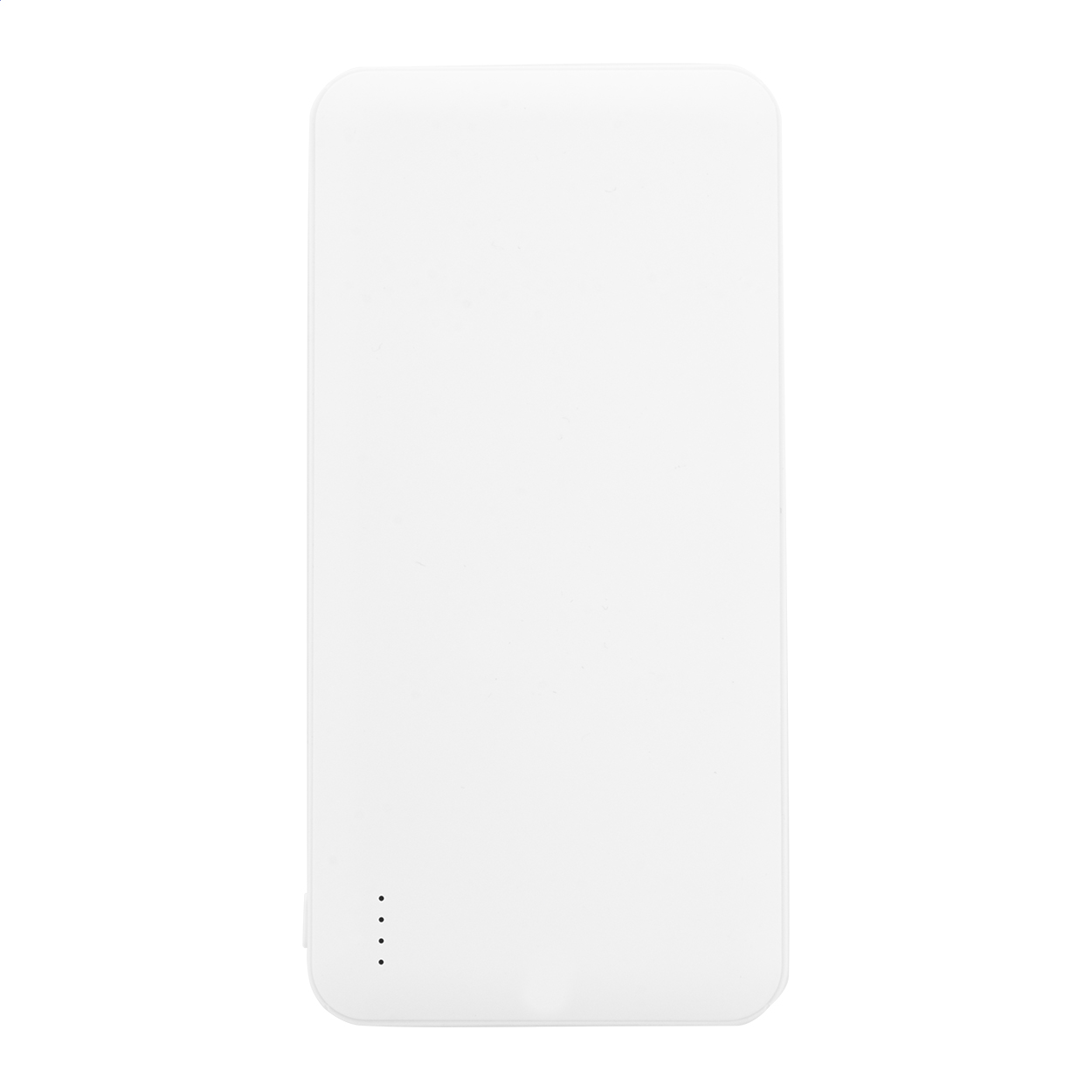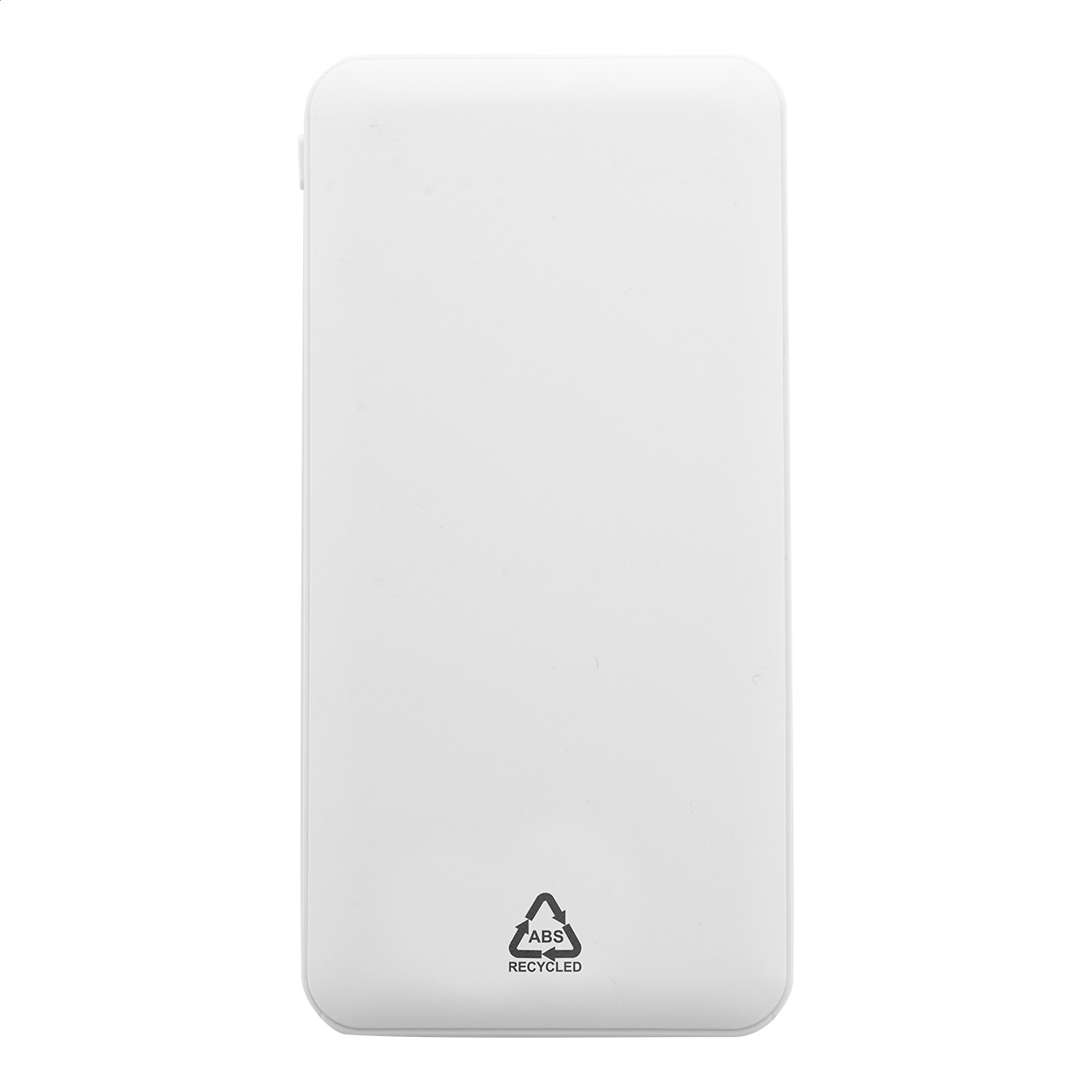 Power banka z recyklovaného ABS plastu s baterií 10 000 mAh. Se 2 porty USB a 1 portem USB-C pro nabíječku. Vstupní porty Micro USB a USB-C. Včetně USB nabíjecího kabelu.