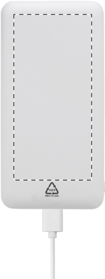 Power banka z recyklovaného ABS plastu s baterií 20 000 mAh. Se 2 USB a 1 nabíjecím portem USB-C. Vstupní porty micro USB a USB-C. Včetně nabíjecího kabelu USB.