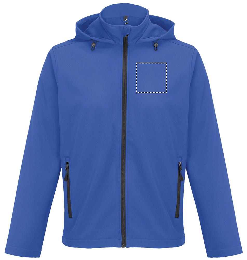 SOL'S RACE HOODED MEN, pánská softshellová bunda s kapucí, 100% recyklovaný polyester Polar fleece podšívka: 100% recyklovaný polyester 2 vrstvy, zapínání vpředu a boční kapsy na černý nylonový zip Černé taháčky na zip Kapuce se stahovací šňůrkou Mírně prodloužená zadní část. Ohledně sladění velikostí se prosím řiďte tabulkou velikostí v sekci dokumentace k výrobku.