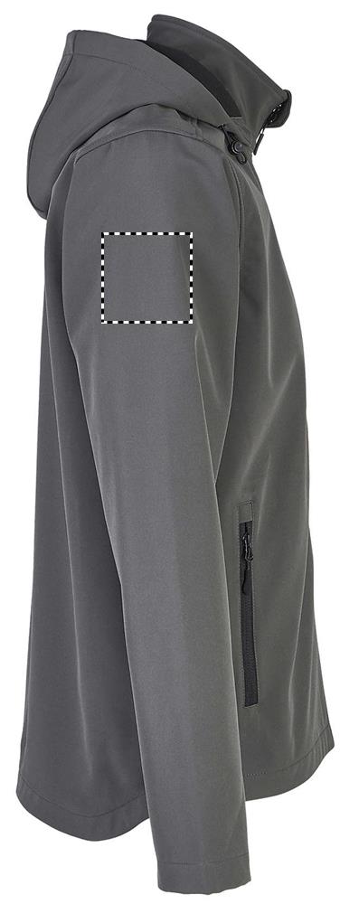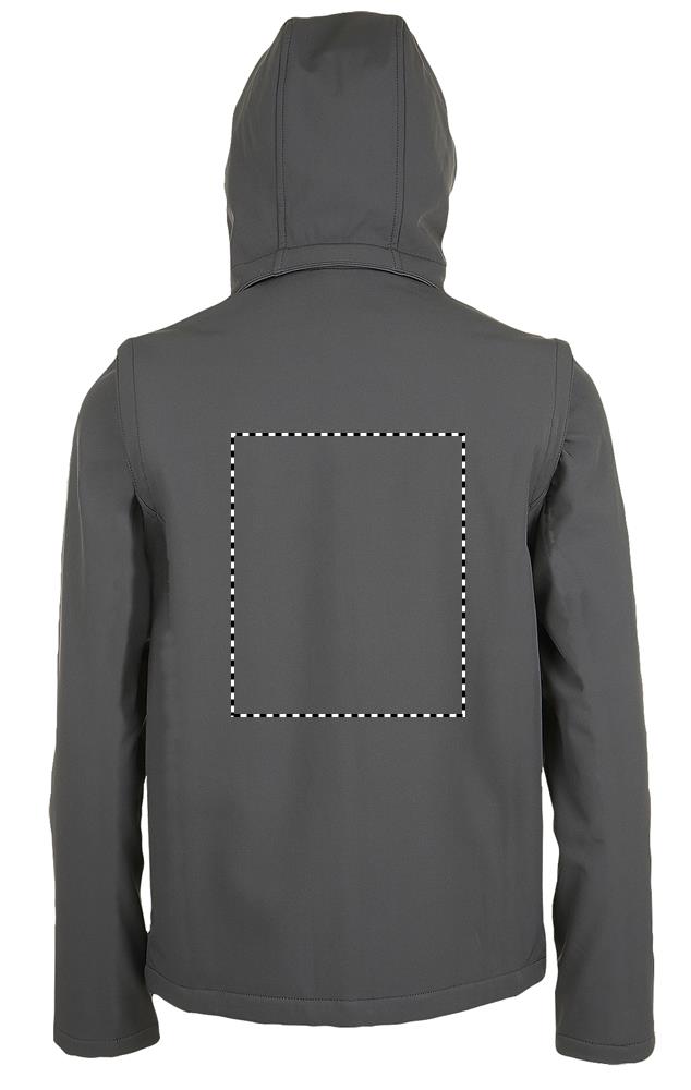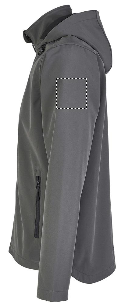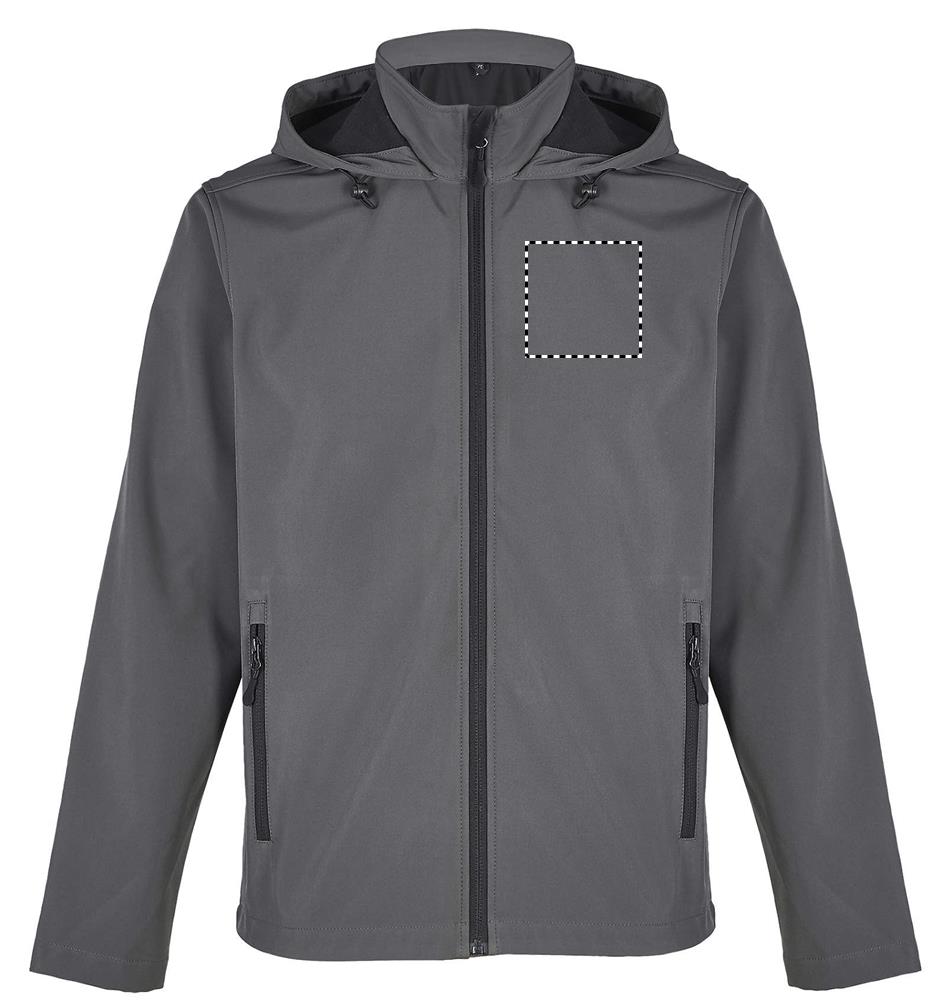 SOL'S RACE HOODED MEN, pánská softshellová bunda s kapucí, 100% recyklovaný polyester Polar fleece podšívka: 100% recyklovaný polyester 2 vrstvy, zapínání vpředu a boční kapsy na černý nylonový zip Černé taháčky na zip Kapuce se stahovací šňůrkou Mírně prodloužená zadní část. Ohledně sladění velikostí se prosím řiďte tabulkou velikostí v sekci dokumentace k výrobku.