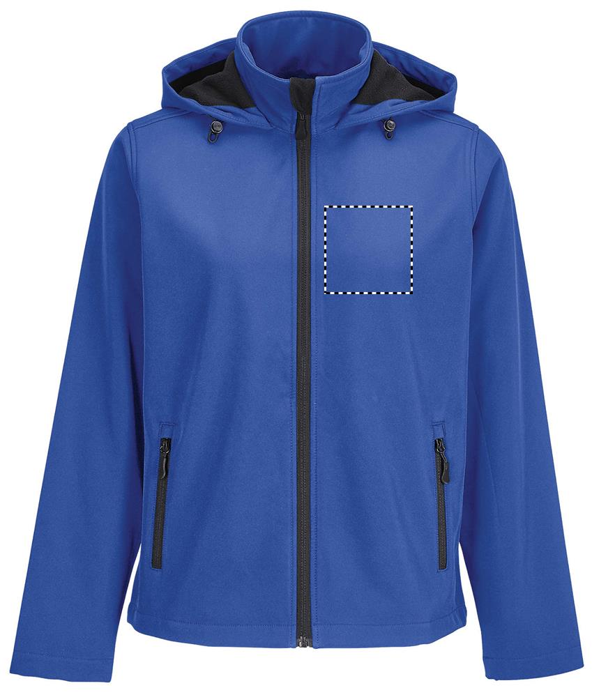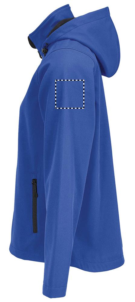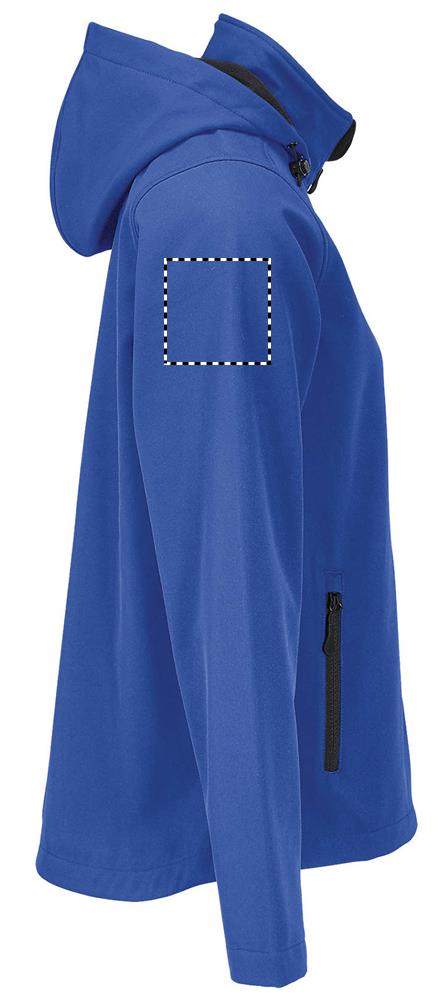 SOL'S RACE HOODED WOMEN, dámská softshellová bunda s kapucí, 100% recyklovaný polyester Polar fleece podšívka: 100% recyklovaný polyester 2 vrstvy, Přední zapínání a boční kapsy s černým nylonovým zipem Černé taháčky na zip Kapuce se stahovací šňůrkou Mírně prodloužená záda. Ohledně sladění velikostí se prosím podívejte na tabulku velikostí v sekci dokumentace k výrobku.