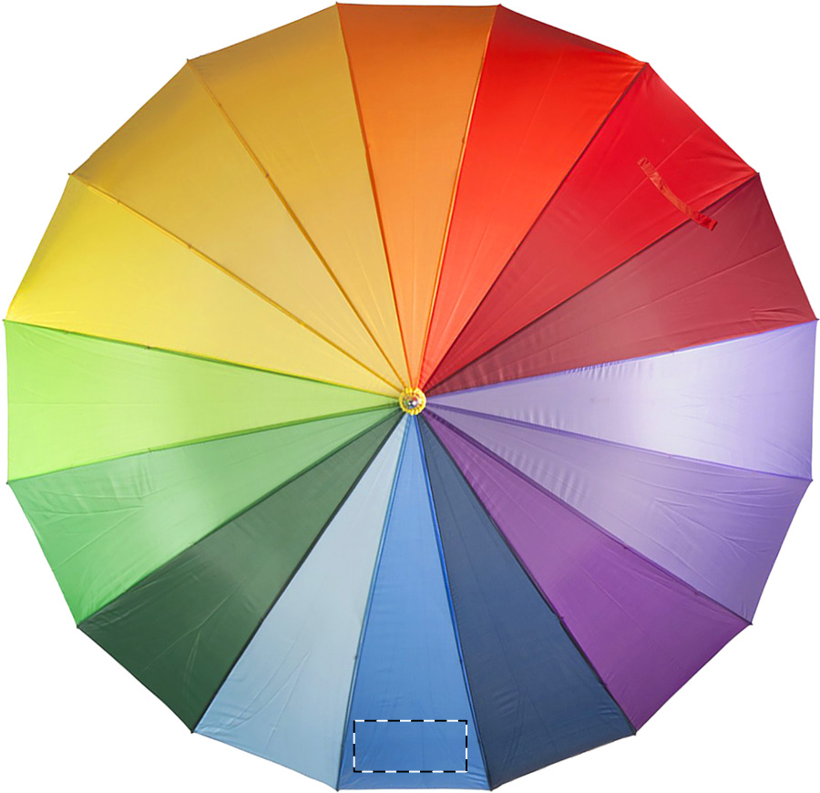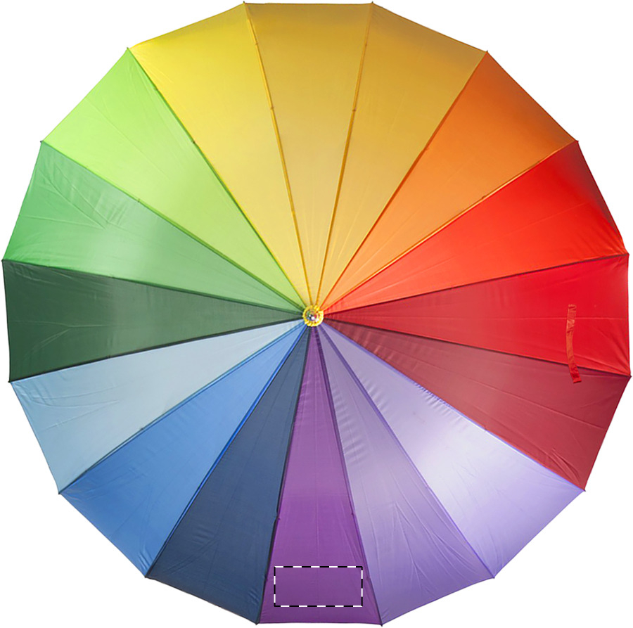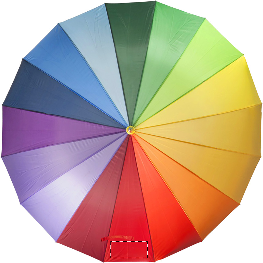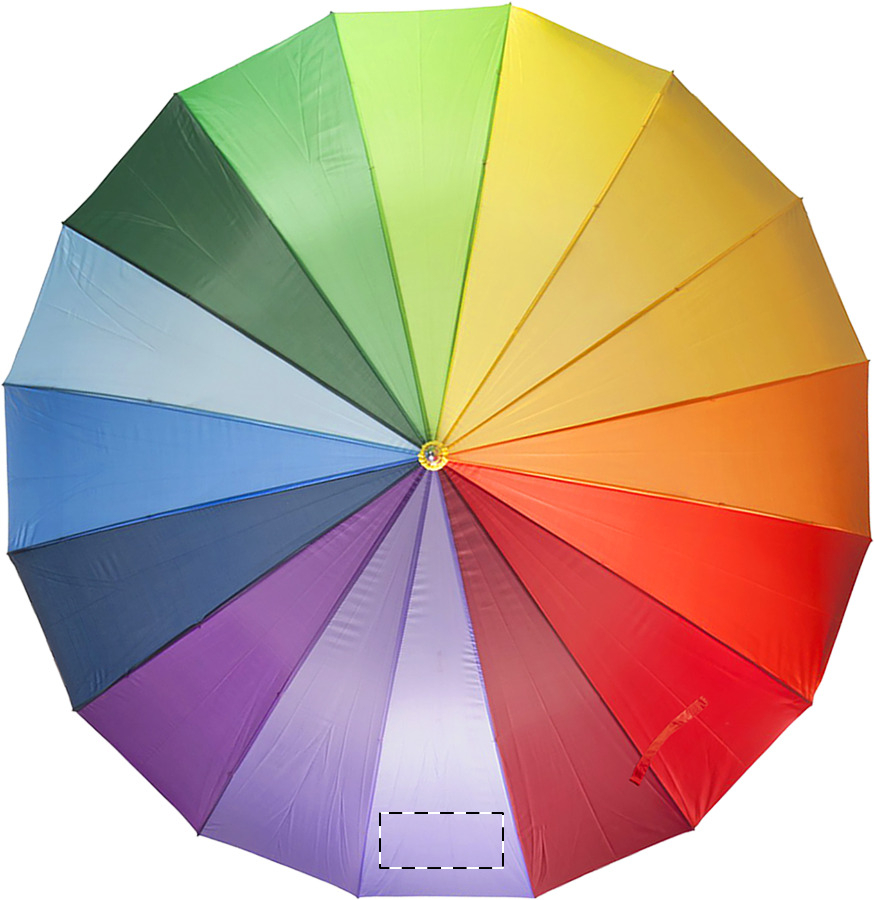 Velký automatický deštník s šestnácti barevnými panely v duhovém provedení okamžitě rozjasní každý sychravý den. Pevná konstrukce se skelnými vlákny spolehlivě odolává náporům větru a poskytuje účinnou ochranu před deštěm, aniž by ztrácela svůj hravý vzhled.