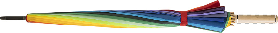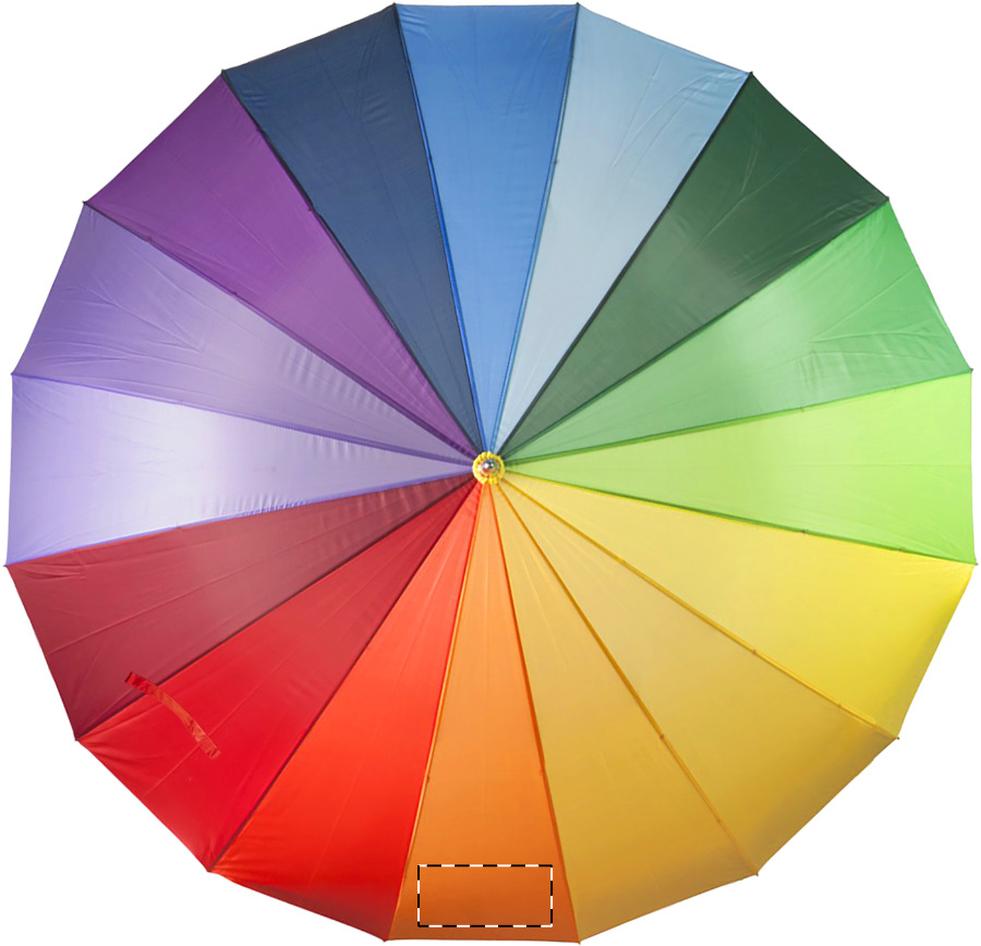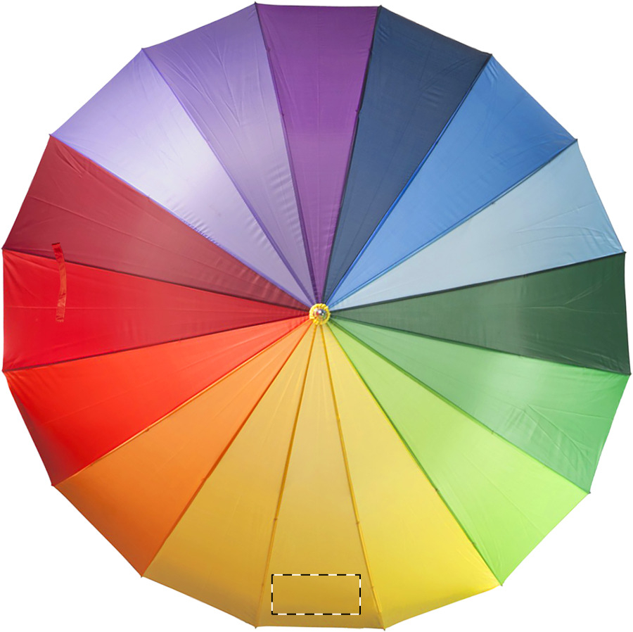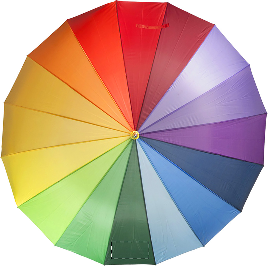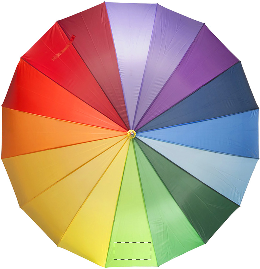 Velký automatický deštník s šestnácti barevnými panely v duhovém provedení okamžitě rozjasní každý sychravý den. Pevná konstrukce se skelnými vlákny spolehlivě odolává náporům větru a poskytuje účinnou ochranu před deštěm, aniž by ztrácela svůj hravý vzhled.