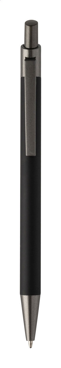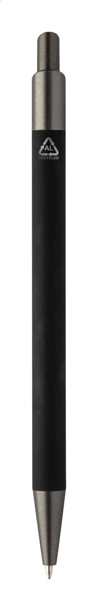 Kuličkové pero z recyklovaného hliníku s pogumovaným tělem a kovovými částmi. S modrou náplní.