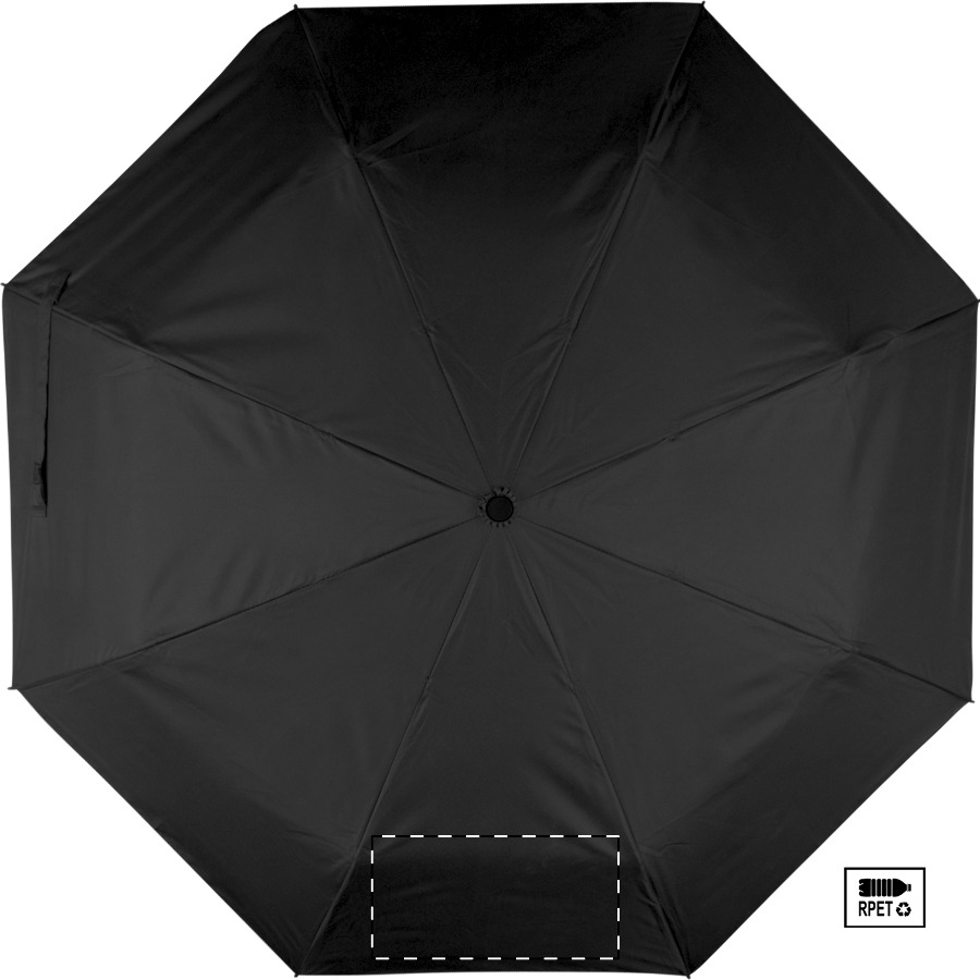 Manuální větruodolný deštník s reverzním otevíráním, 8 panely, dvouvrstvou dvoubarevnou stříškou, kovovým rámem, žebry ze skelných vláken a pogumovanou rukojetí. Materiál: 190T RPET pongee. S výrazným štítkem RPET.