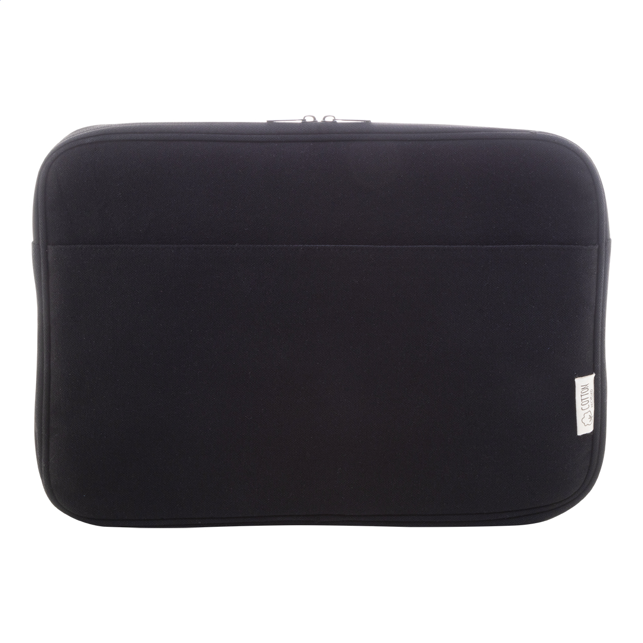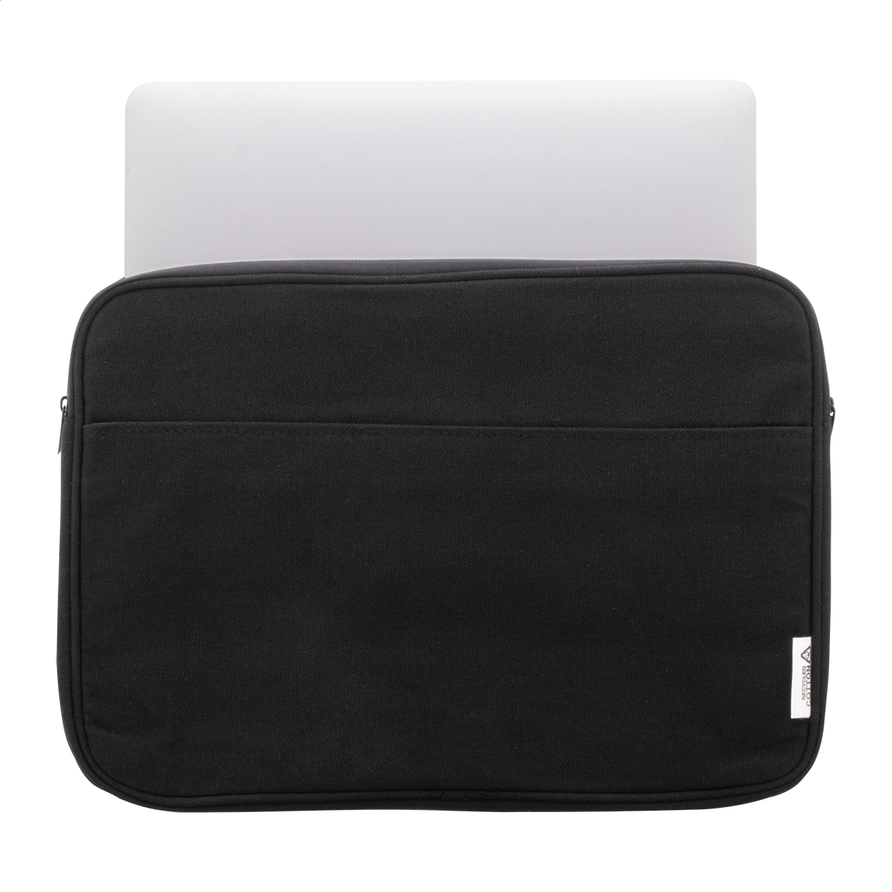 Plně polstrovaná taška na notebook z recyklovaného plátna s přihrádkou na zip a přední kapsou. Vhodné pro notebooky do 15". 70% recyklované bavlny a 30% RPET polyesteru. S výrazným štítkem z recyklované bavlny.