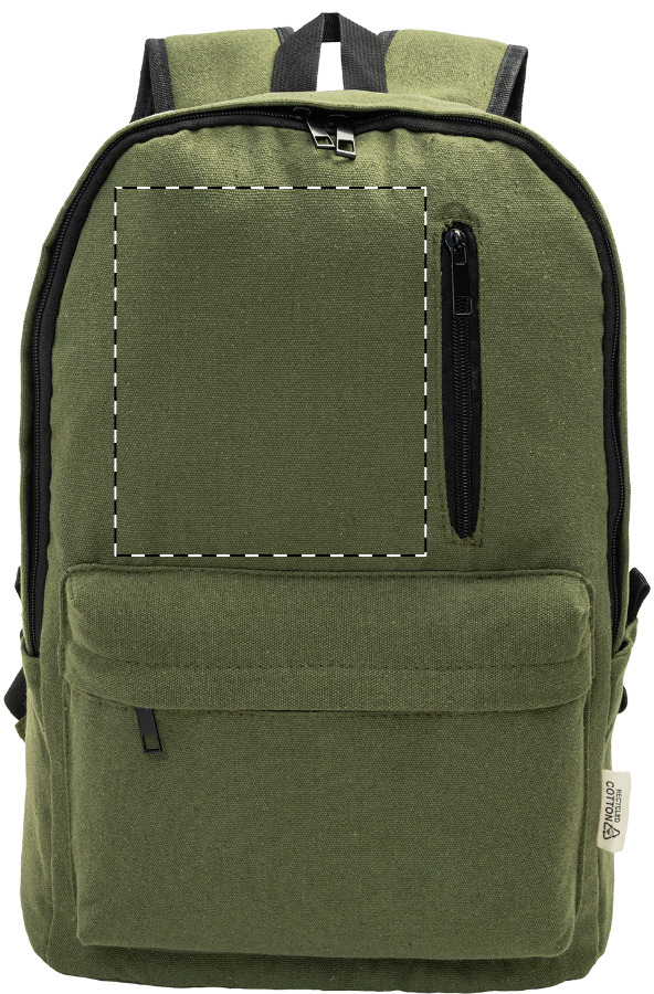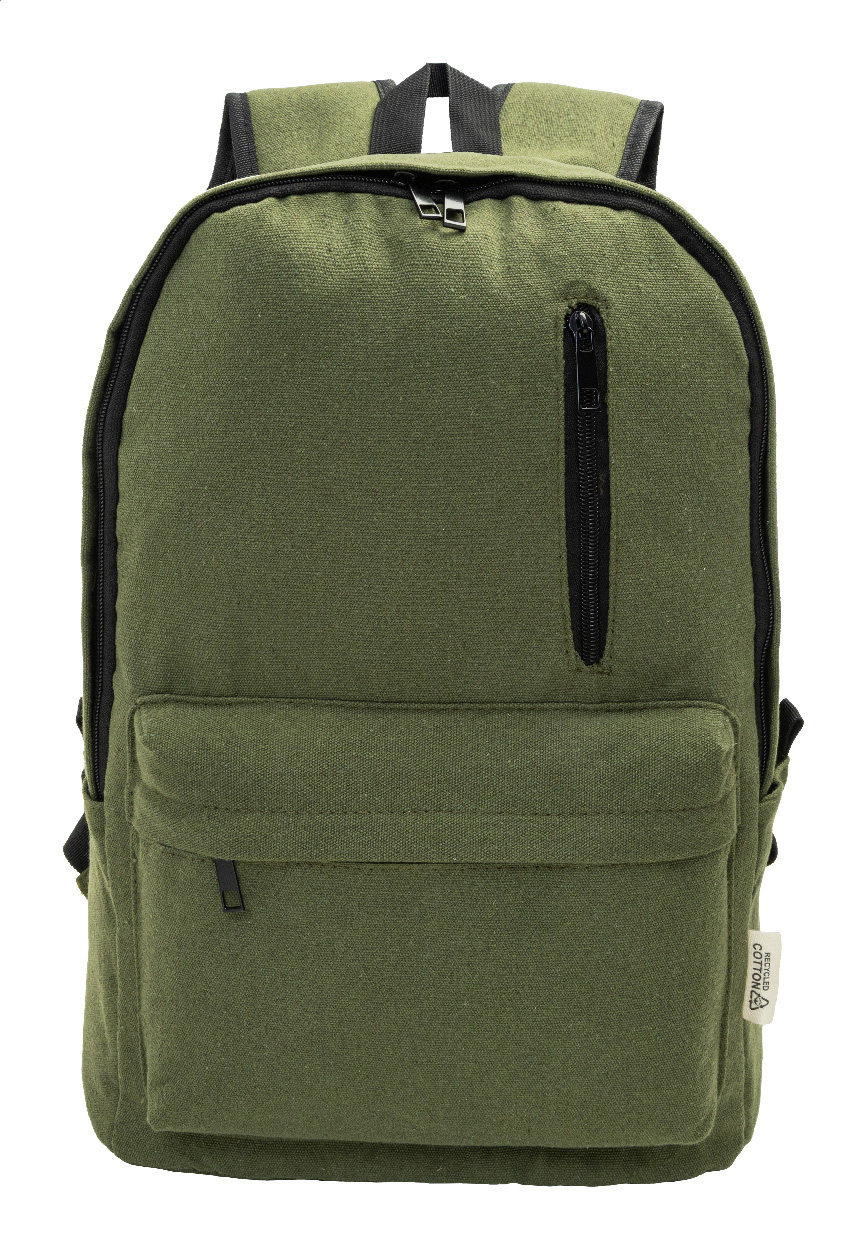 Recyklovaný plátěný batoh s hlavní přihrádkou na zip, polstrovanou přihrádkou na notebook (15"), 2 předními kapsami na zip, bočními kapsami, popruhem na kolečkách, polstrovanými zády a ramenními popruhy. 70% recyklované bavlny a 30% RPET polyesteru. S výrazným štítkem recyklované bavlny.