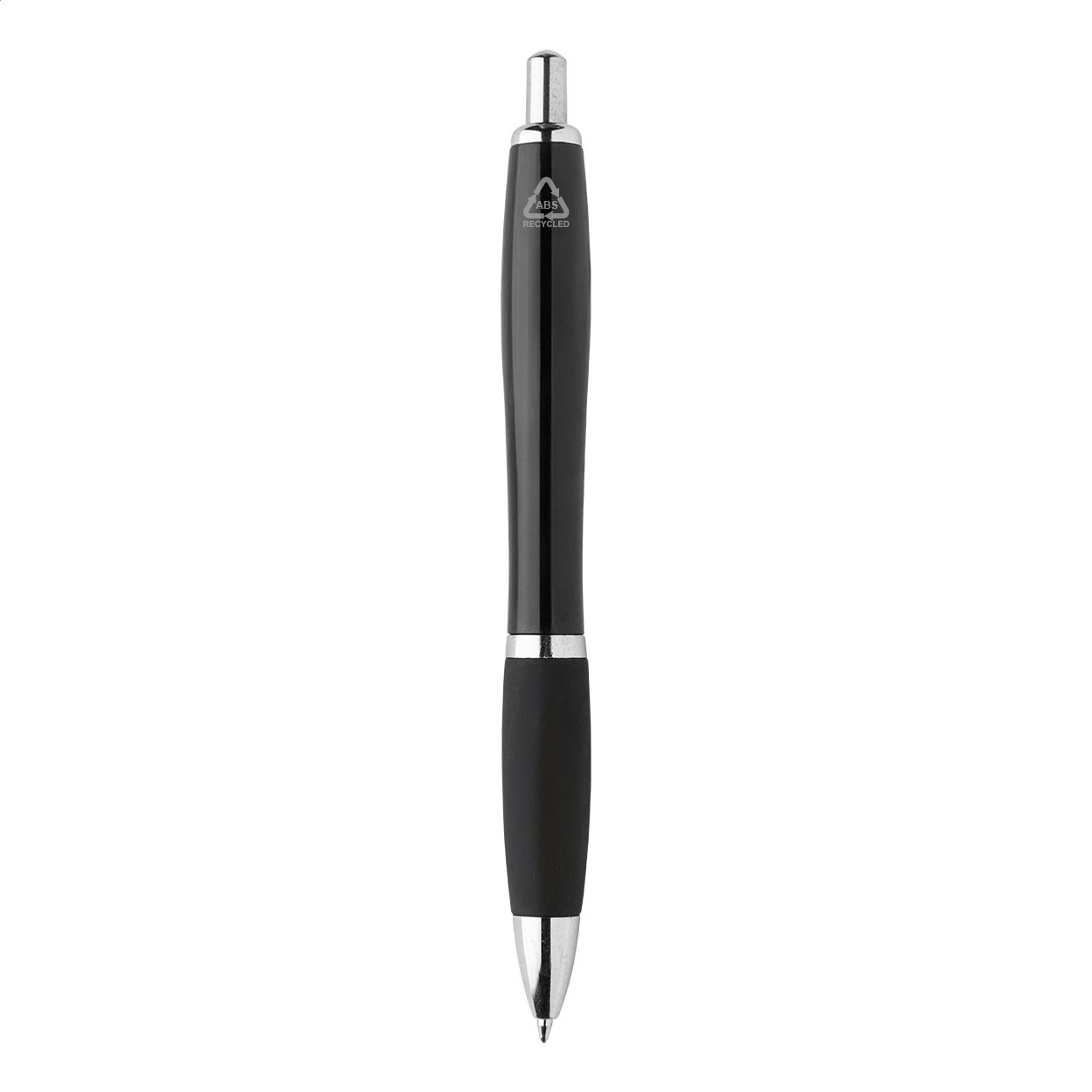Kuličkové pero z recyklovaného ABS plastu s úchopem v odpovídající barvě a chromovanými částmi. S modrou náplní.