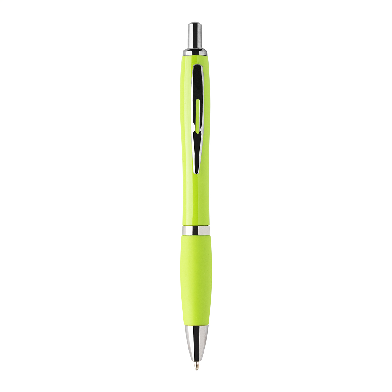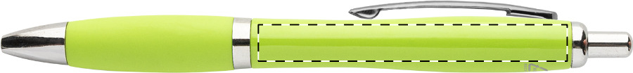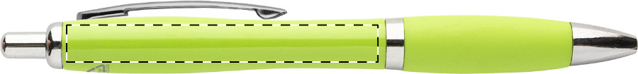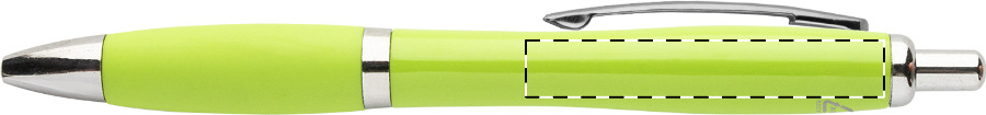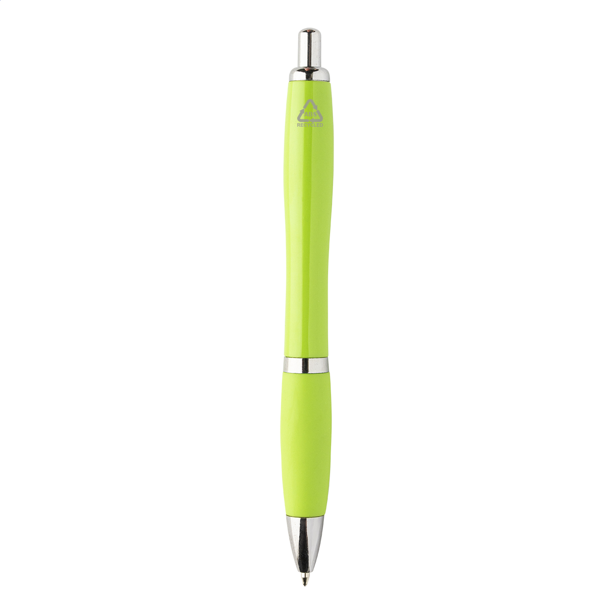 Kuličkové pero z recyklovaného ABS plastu s úchopem v odpovídající barvě a chromovanými částmi. S modrou náplní.