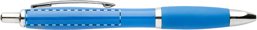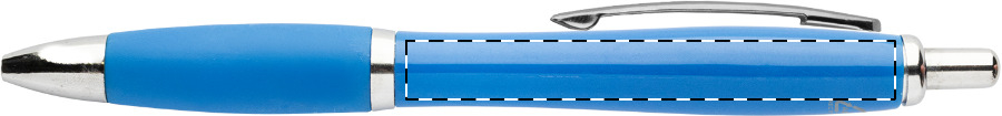 Kuličkové pero z recyklovaného ABS plastu s úchopem v odpovídající barvě a chromovanými částmi. S modrou náplní.