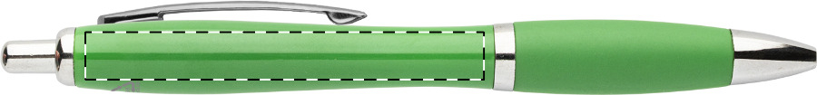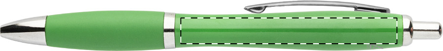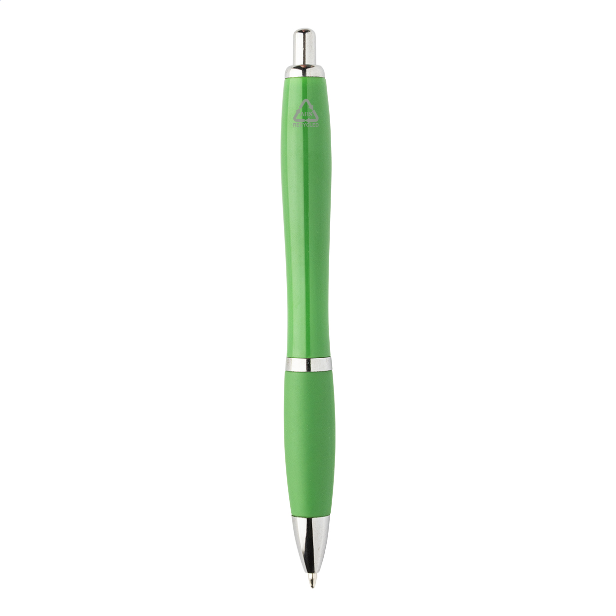 Kuličkové pero z recyklovaného ABS plastu s úchopem v odpovídající barvě a chromovanými částmi. S modrou náplní.