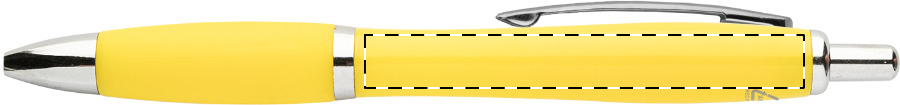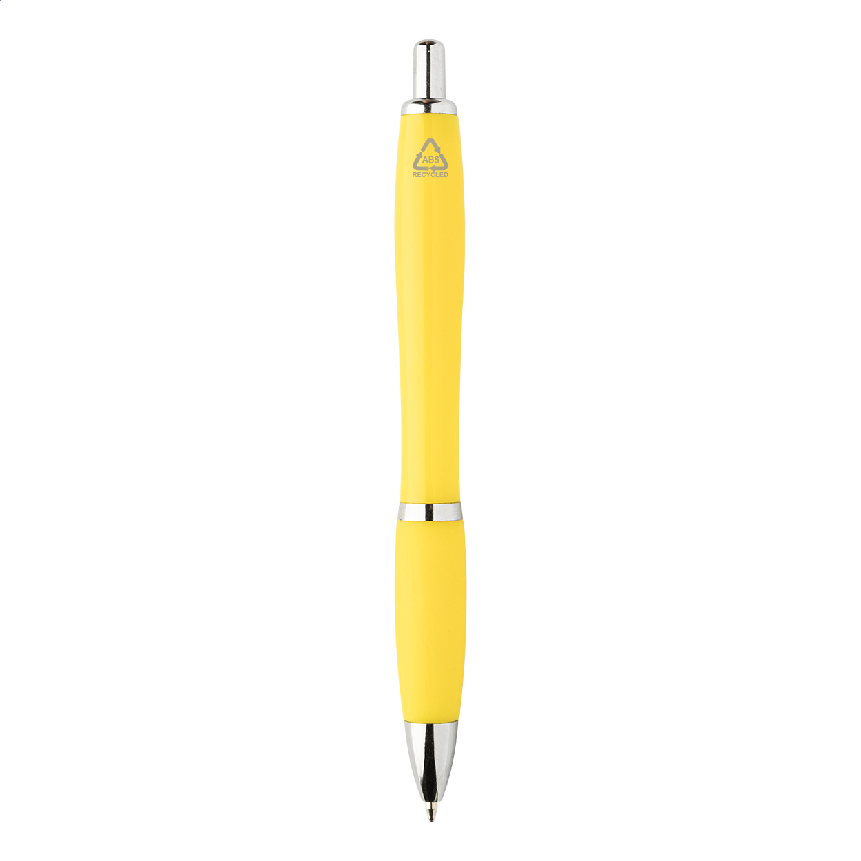 Kuličkové pero z recyklovaného ABS plastu s úchopem v odpovídající barvě a chromovanými částmi. S modrou náplní.