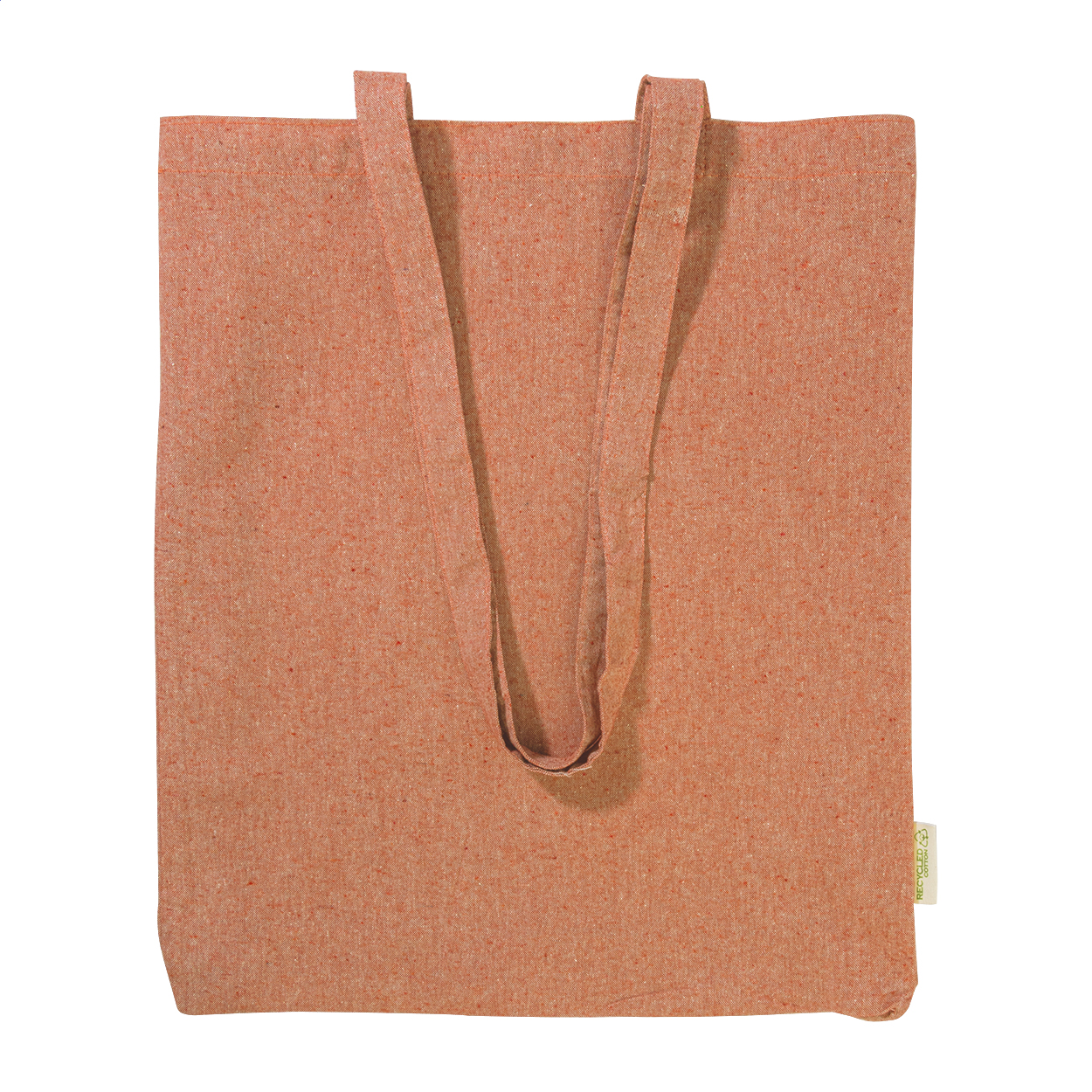 Opakovaně použitelná nákupní taška ze 100% recyklované bavlny s dlouhými uchy a výrazným štítkem z recyklované bavlny, 140 g/m².